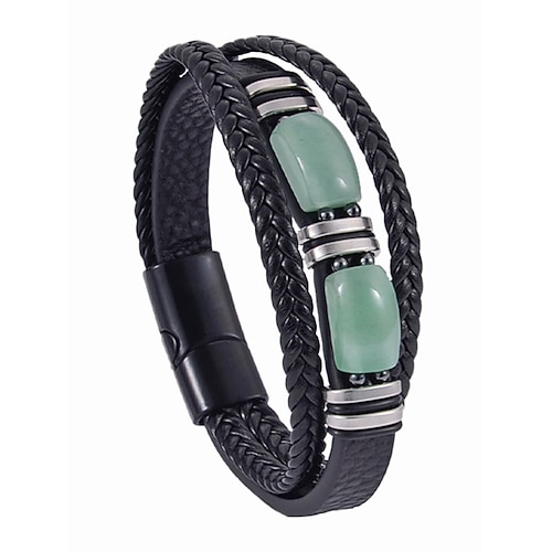 Bracciale da uomo in pietra naturale e finta pelle, cinturino da po...