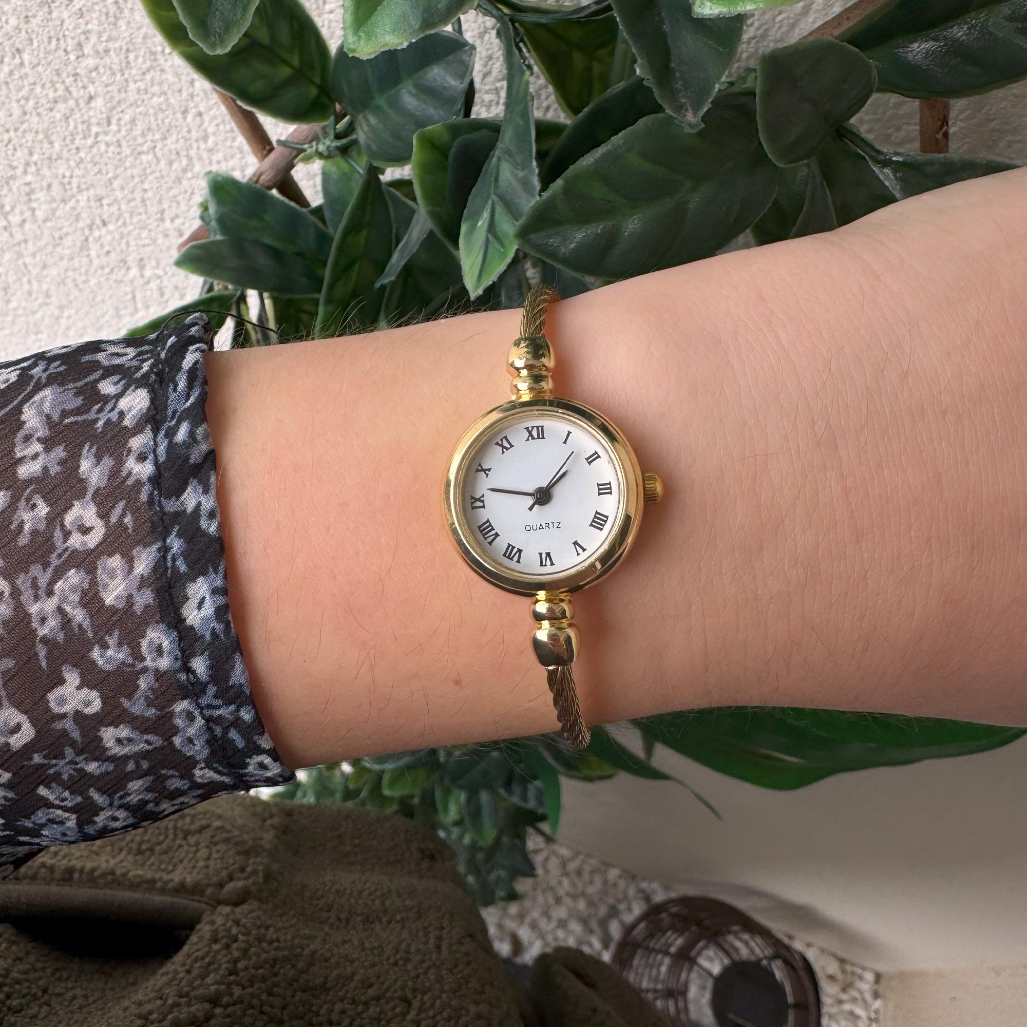 Orologio da polso da donna vintage color oro con quadrante bianco rotondo, eleganti numeri romani e ...