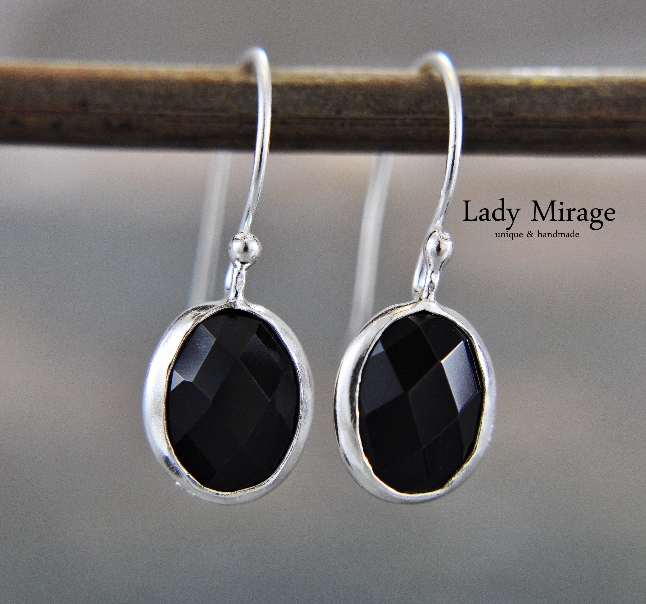925 Sterling Silver - Onyx Earrings - Gemstone