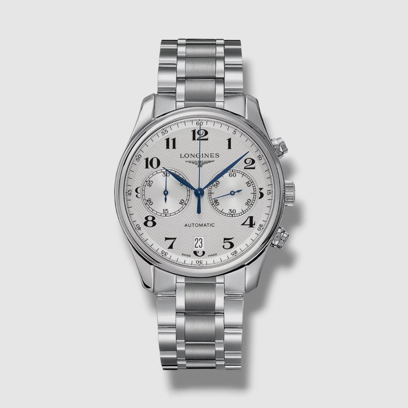 Longines Orologio da uomo svizzero automatico cronografo Master con bracciale in acciaio inossidabil...