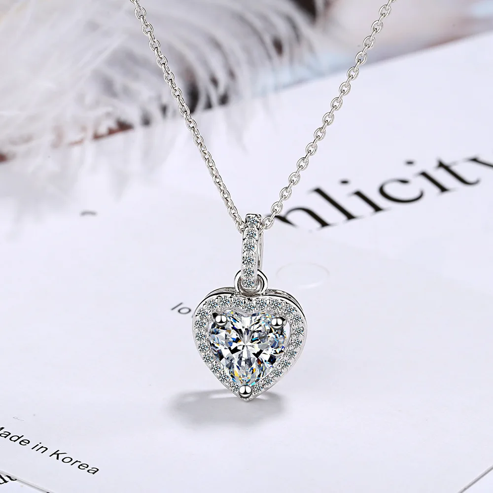Collane con pendenti a forma di cuore in argento sterling 925 con zirconi per le donne, gioielli di ...