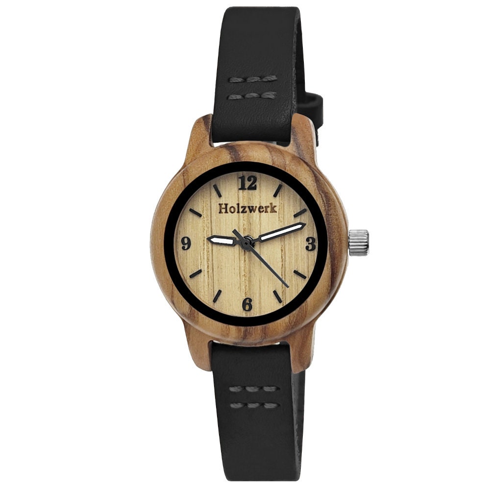 Holzwerk CLARA BLACK piccolo orologio in legno per bambini con cint...
