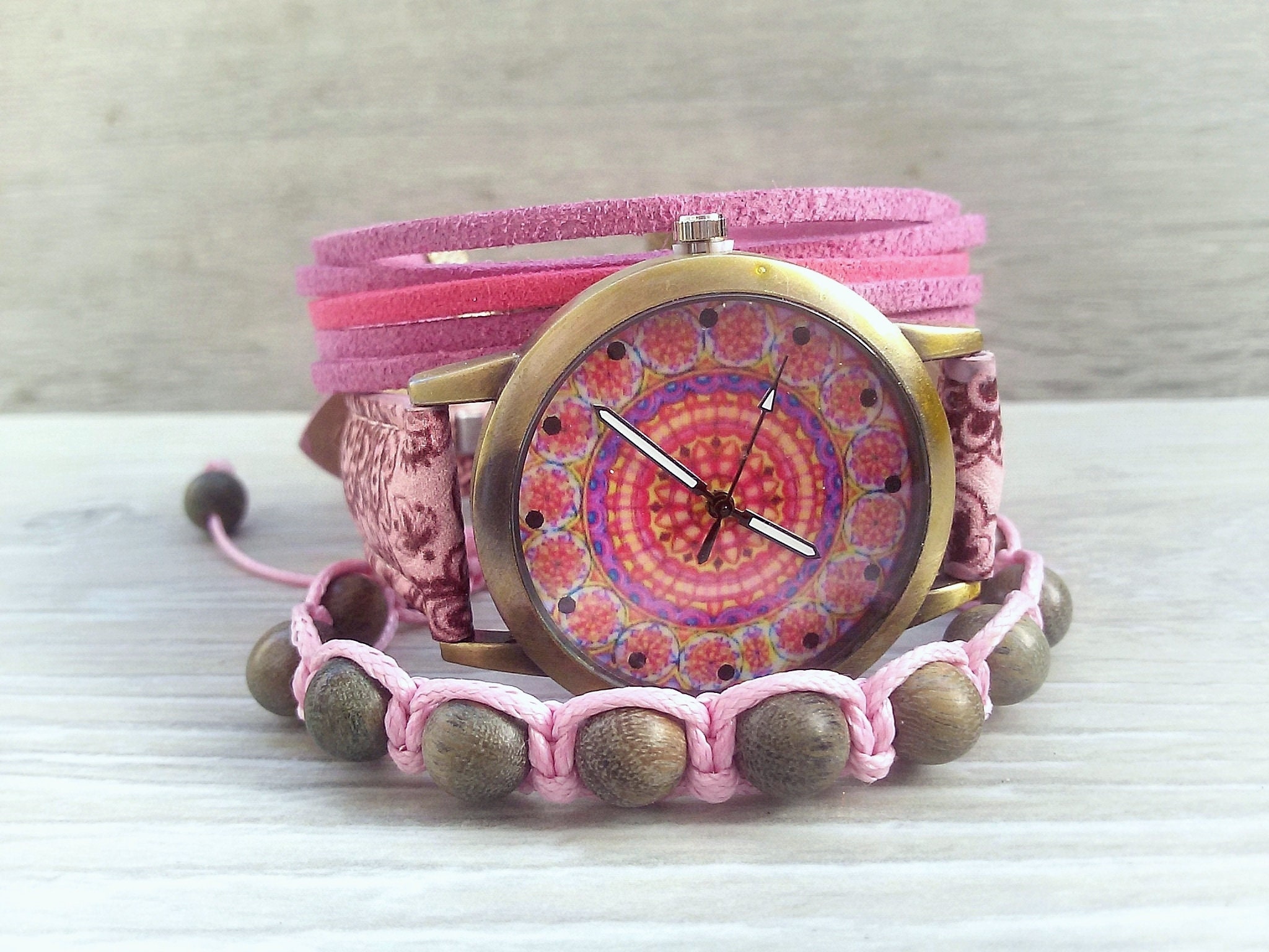 "Orologio Mandala Rosa Orologio Boho Bracciale Orologio Rosa Accessori Mandala Regalo per Donna...