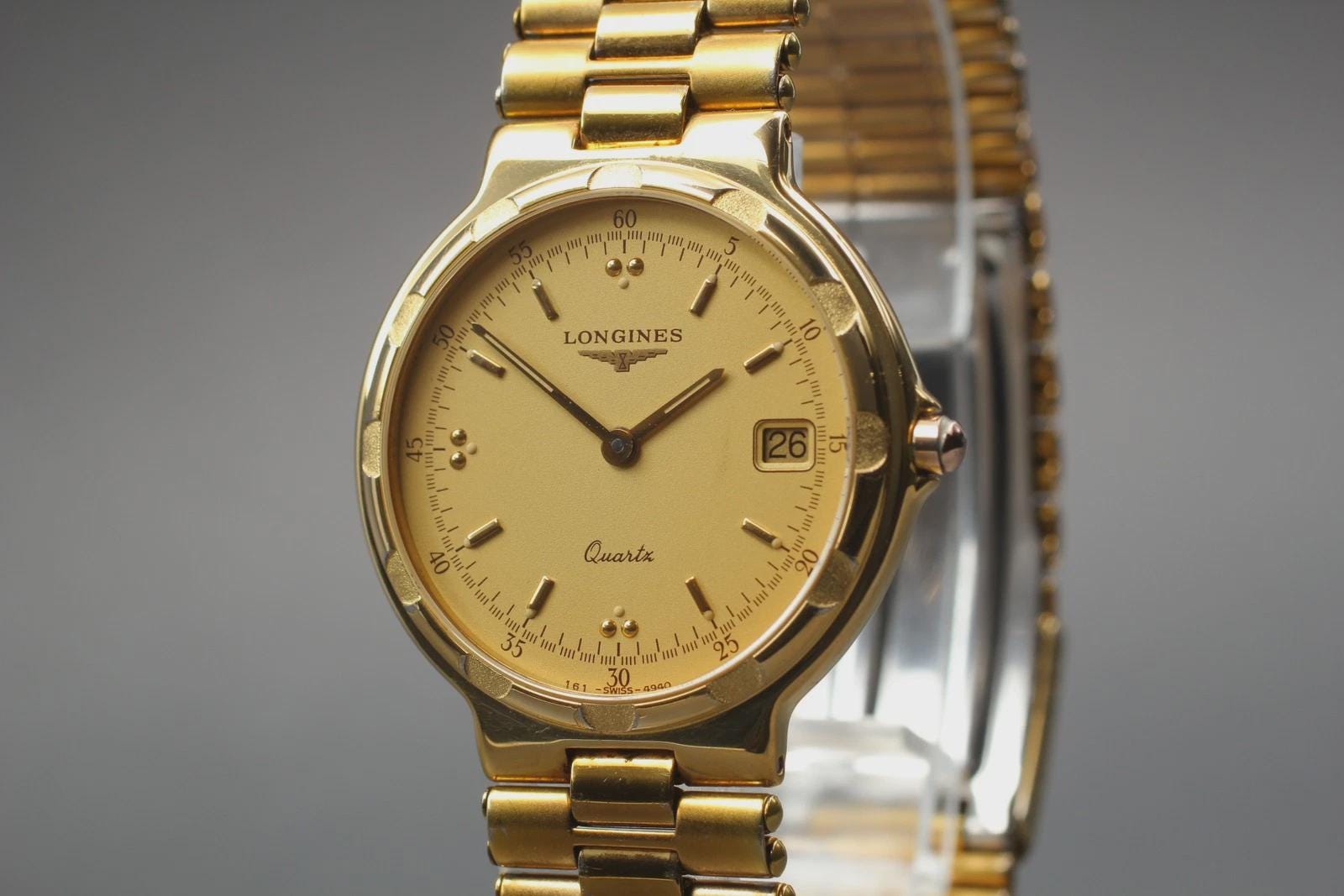 Orologio da uomo Longines al quarzo vintage placcato oro 18 carati
