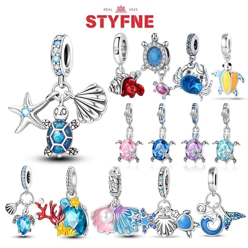 Ciondoli per bracciale originale Pandora in argento sterling 925 serie oceano tartaruga blu stella m...