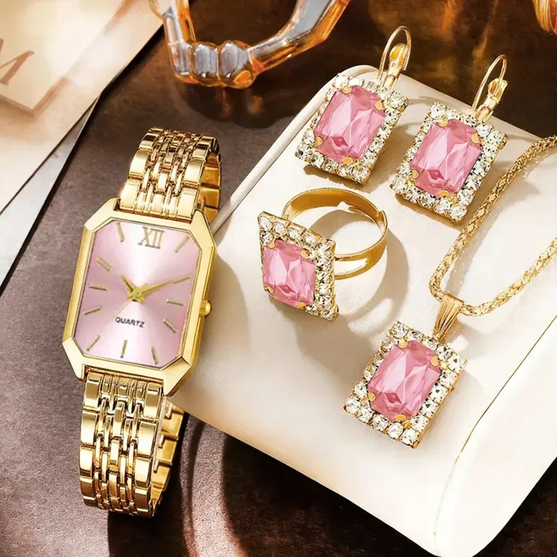 Set di 5 Eleganti Orologi da Polso al Quarzo per Donna con Quadrant...