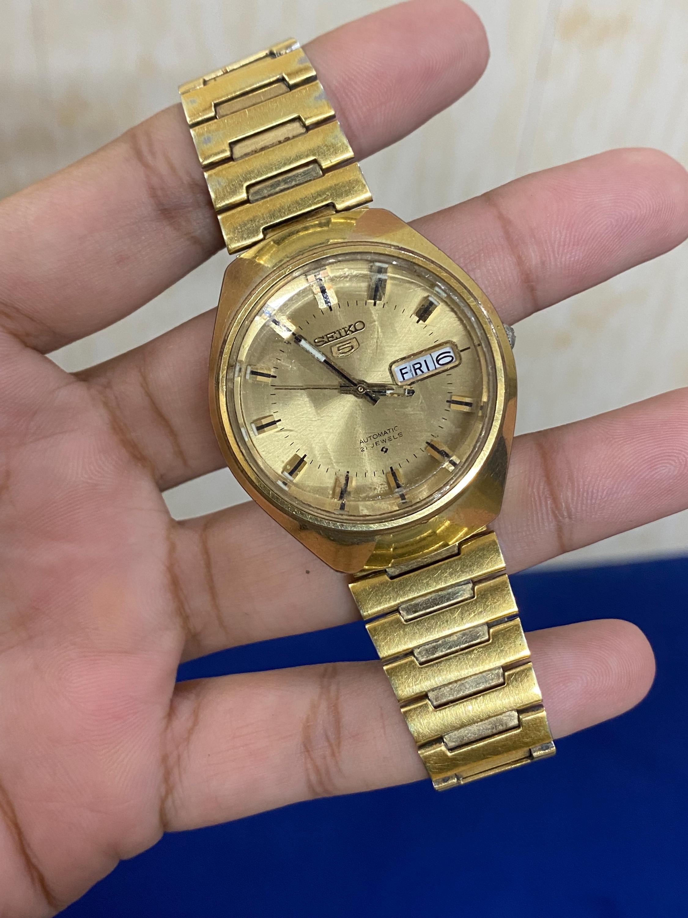 Orologio da polso vintage raro Seiko 5 Helmet Golden Automatic 6319...