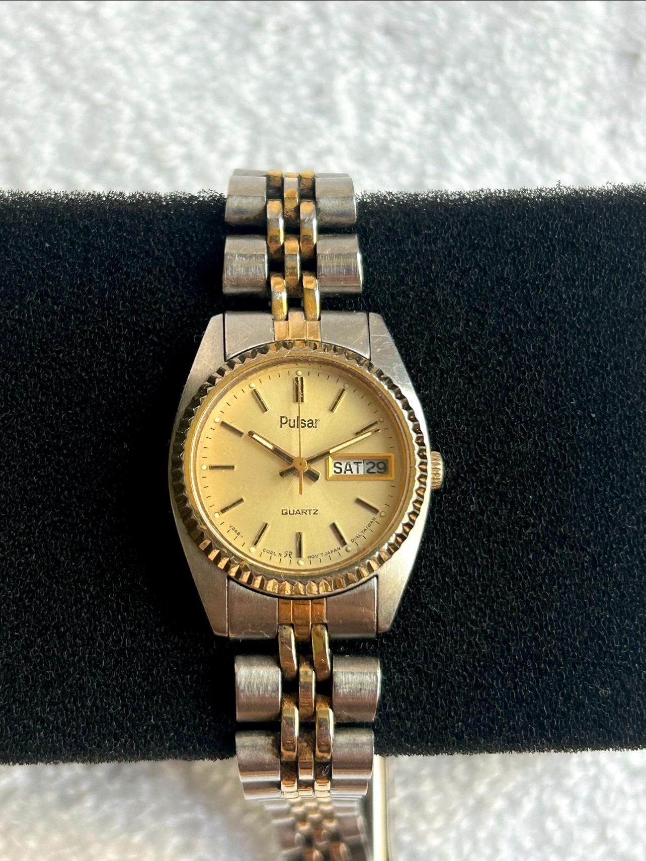 Orologio da polso da donna vintage Pulsar by Seiko, in acciaio inossidabile placcato oro bicolore, c...