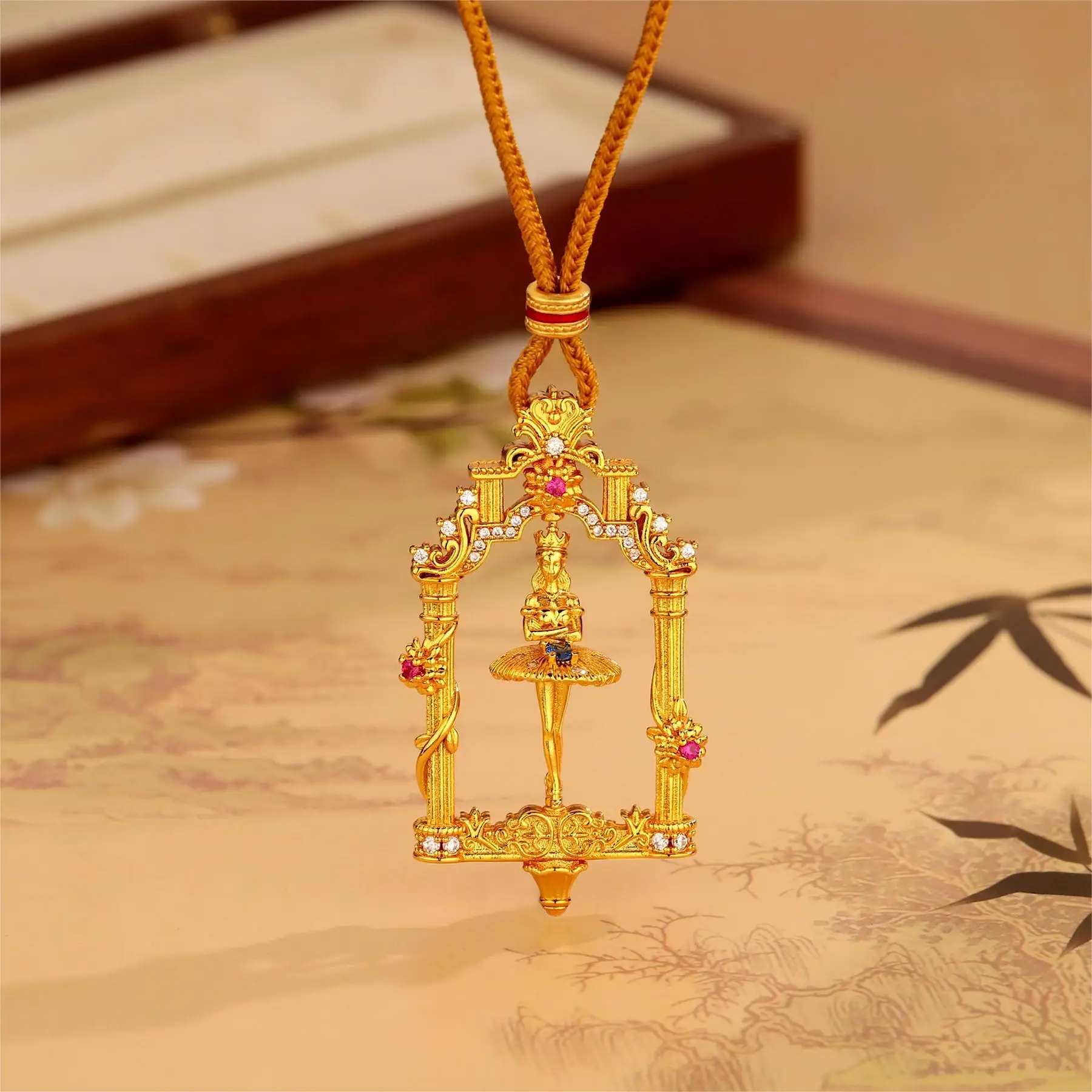 Collana con Ballerina tra Fiori Design Femminile con Diamanti a Poi...