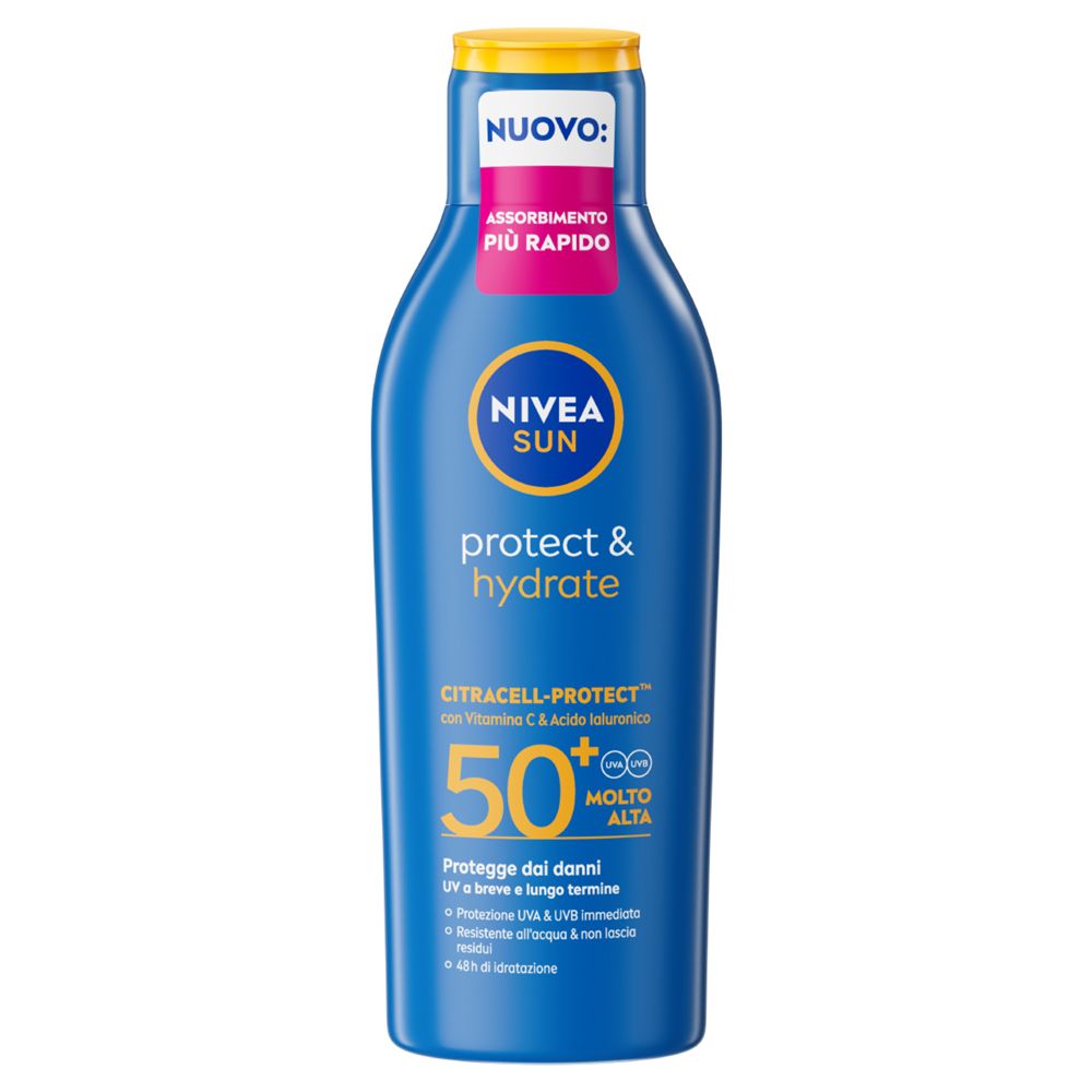 Nivea Sun Latte Solare Protect & Hydrate Spf50+ 200 ml, Crema solare 50+ idratante per 48 oreNiv...