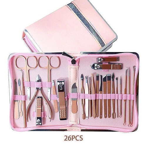 set manicure kit pedicure - 26 pezzi kit manicure tagliaunghie prof...