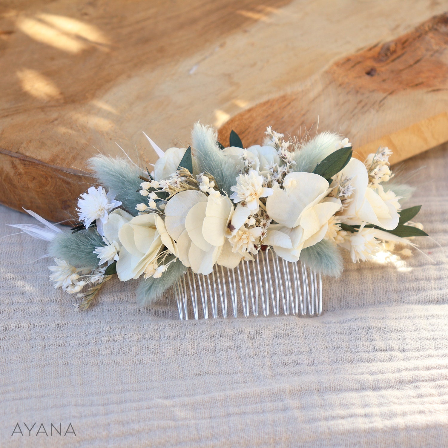 Pettine per capelli con fiori naturali, accessori per capelli da sposa in stile boho, pettine per ca...