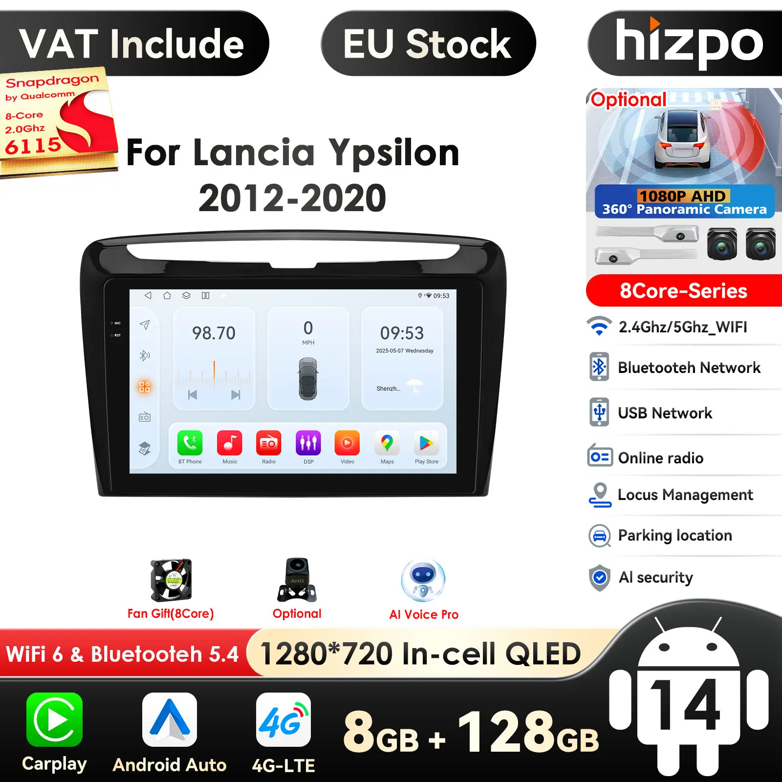 Hizpo Lettore multimediale per auto Android Auto Carplay wireless da 9 pollici per Lancia Ypsilon 20...