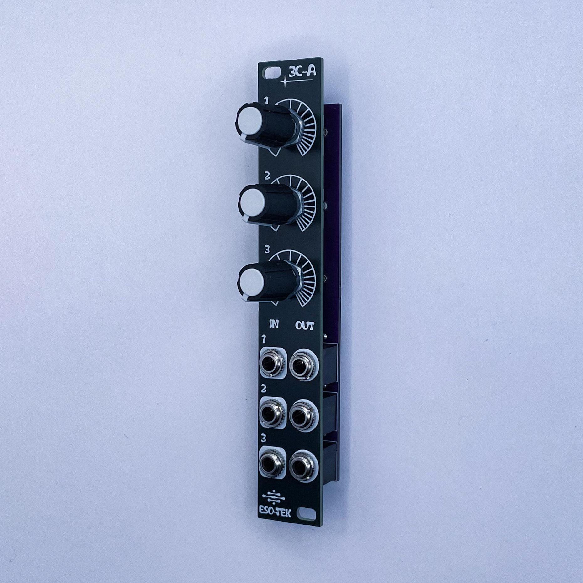 3C-A Attenuatore passivo a 3 canali Istruzioni: Collega qualsiasi segnale audio/CV agli ingressi eti...