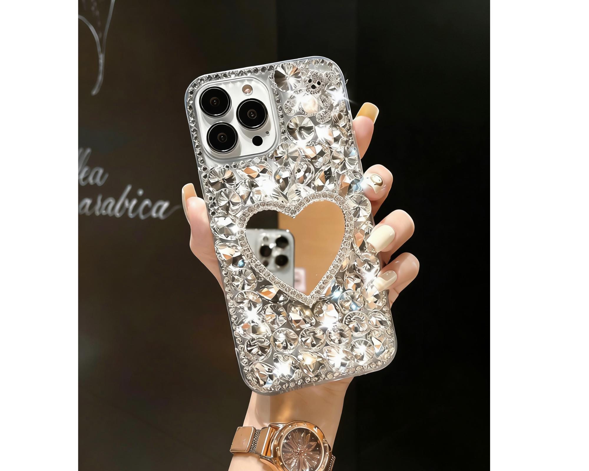 Custodia per telefono con diamanti, custodia trasparente personaliz...