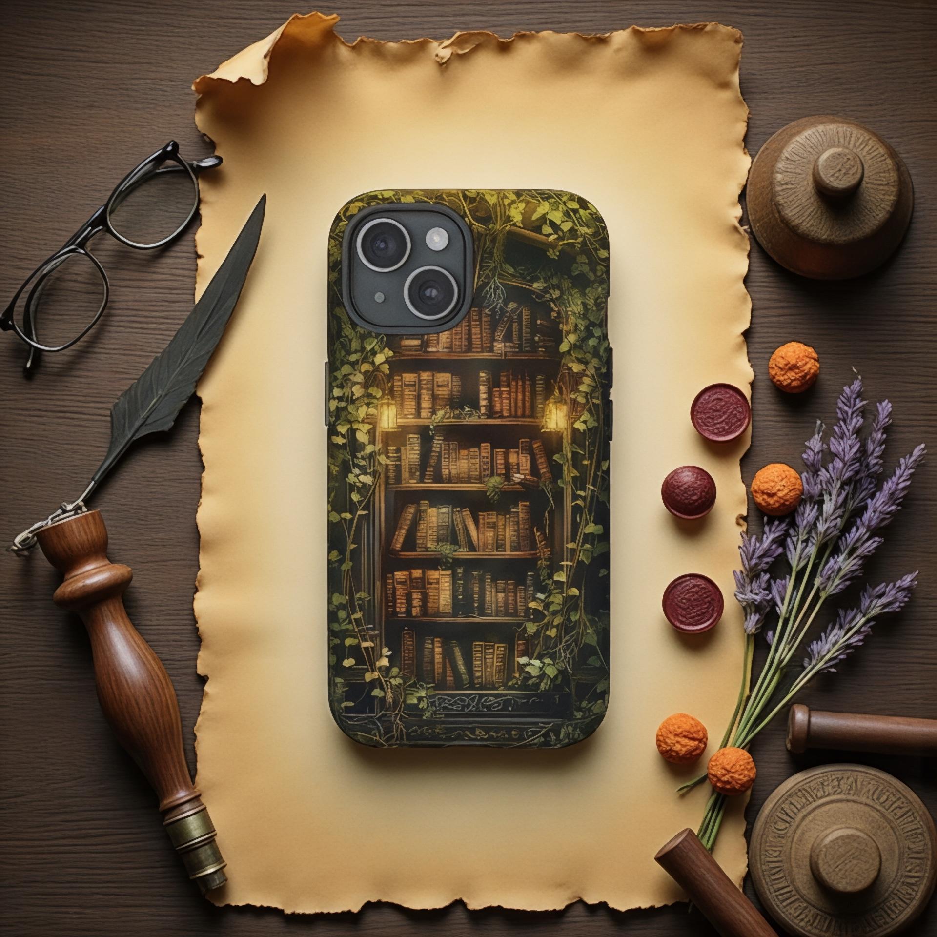 ️ Raffinata custodia per telefono personalizzata ispirata a una libreria con tema accademico ...