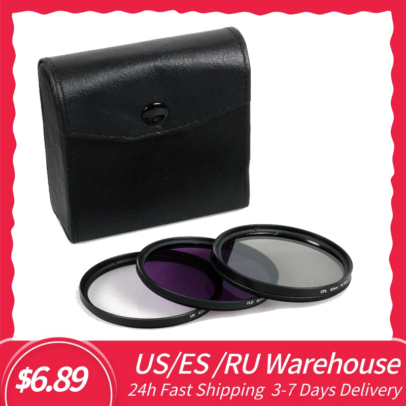 Lightdow UV + CPL + FLD Set di filtri per fotocamera 49 52 55 58 62...