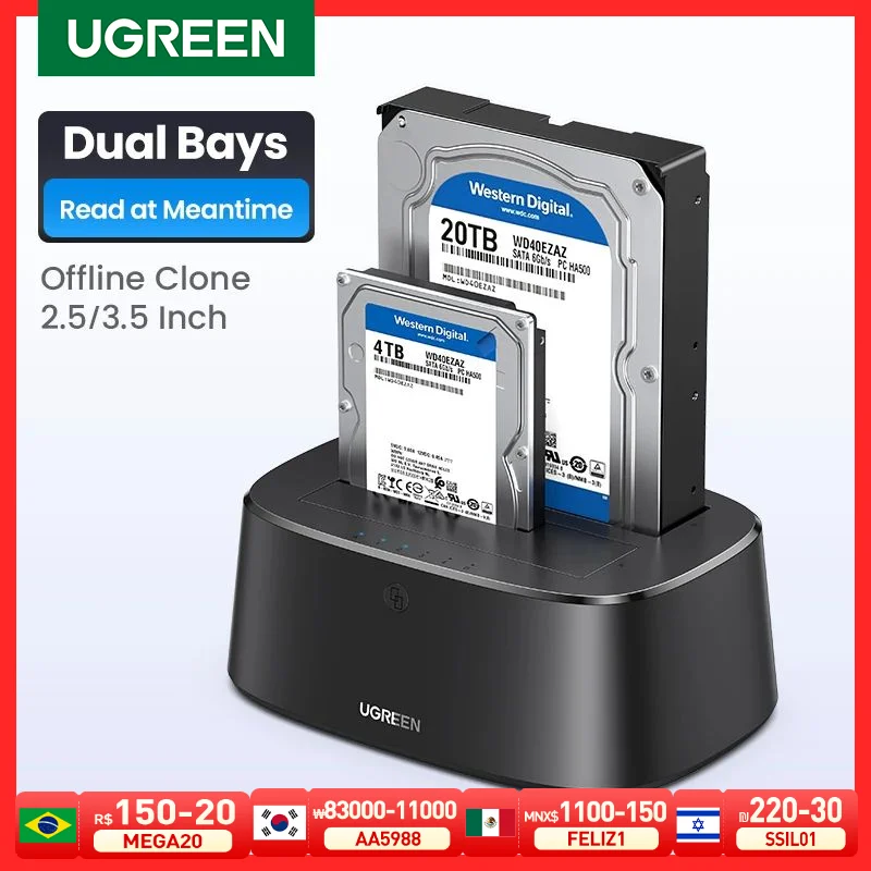UGREEN HDD Docking Station SATA a USB 3.0 adattatore per 2.5 3.5 SSD Disk Case HDD Box Dock Hard Dri...