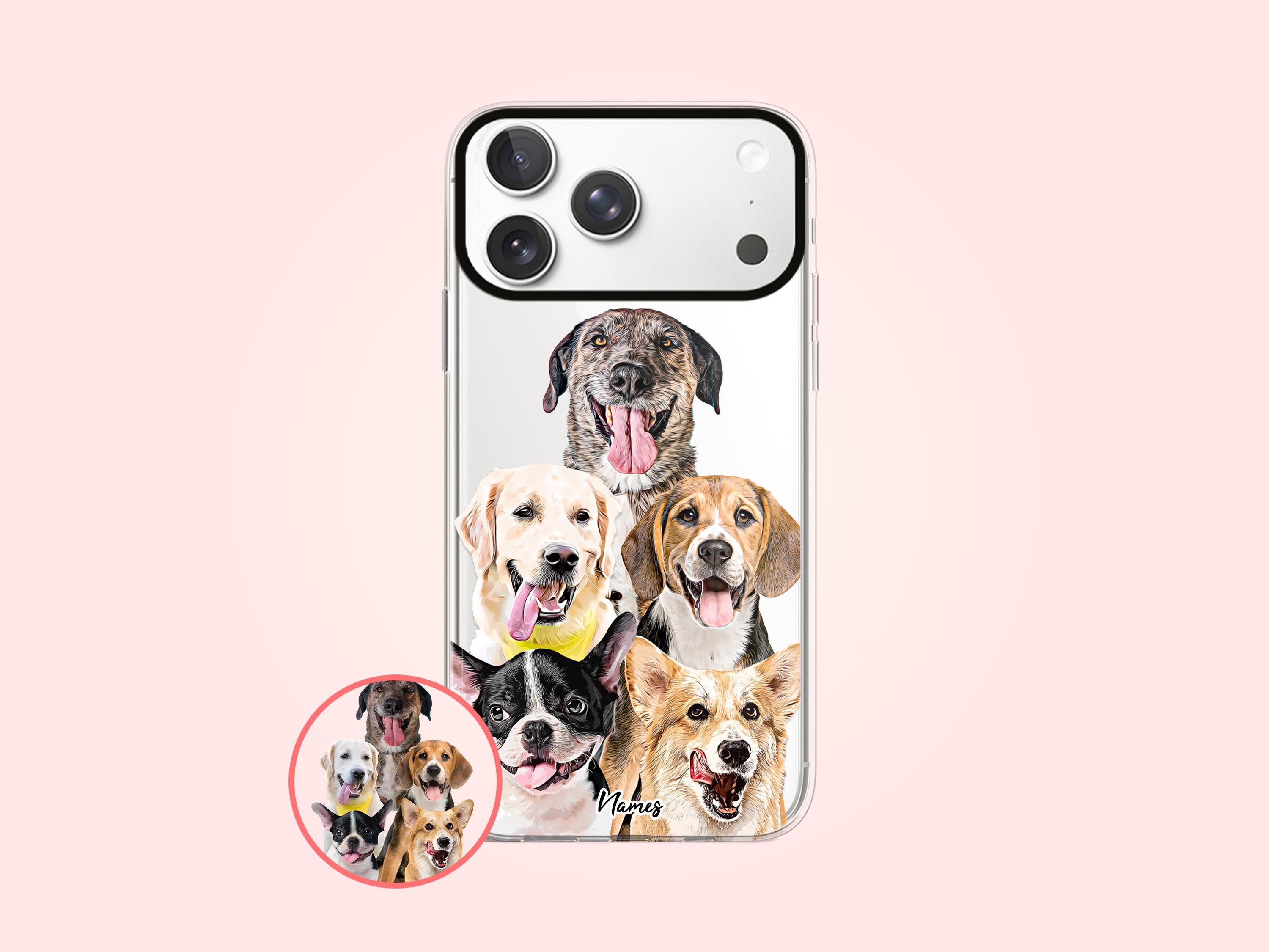 Custodia per iPhone personalizzata con 5 cani, regali personalizzat...