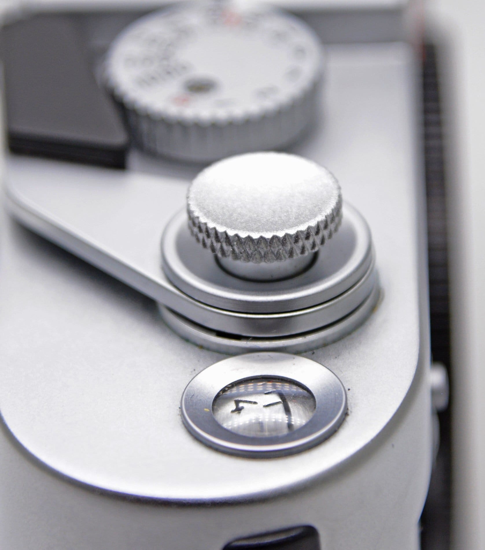 METAL SOFT SHUTTER BUTTON WITH A CONCAVE SURFACE OF SILVER COLOR. THE SOFT SHUTTER SCREWS INTO THE C...