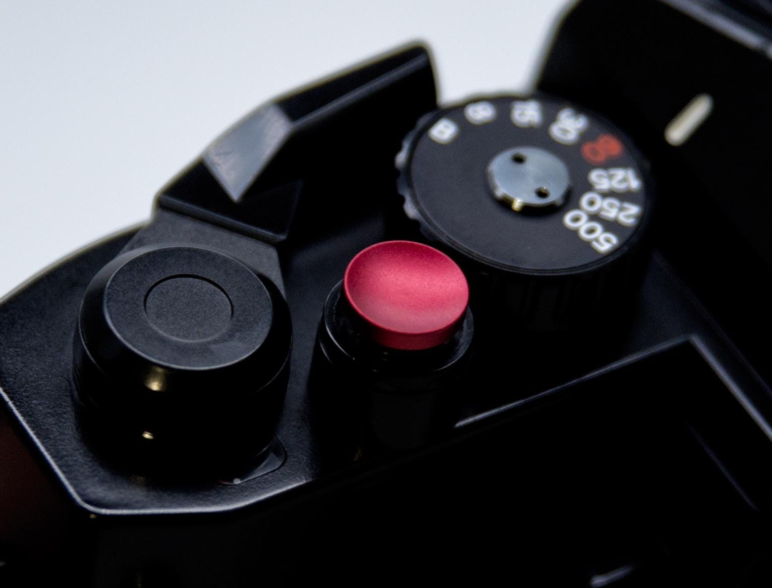 METAL SOFT SHUTTER BUTTON WITH A CONCAVE SURFACE OF DARK RED COLOR. THE SOFT SHUTTER SCREWS INTO THE...