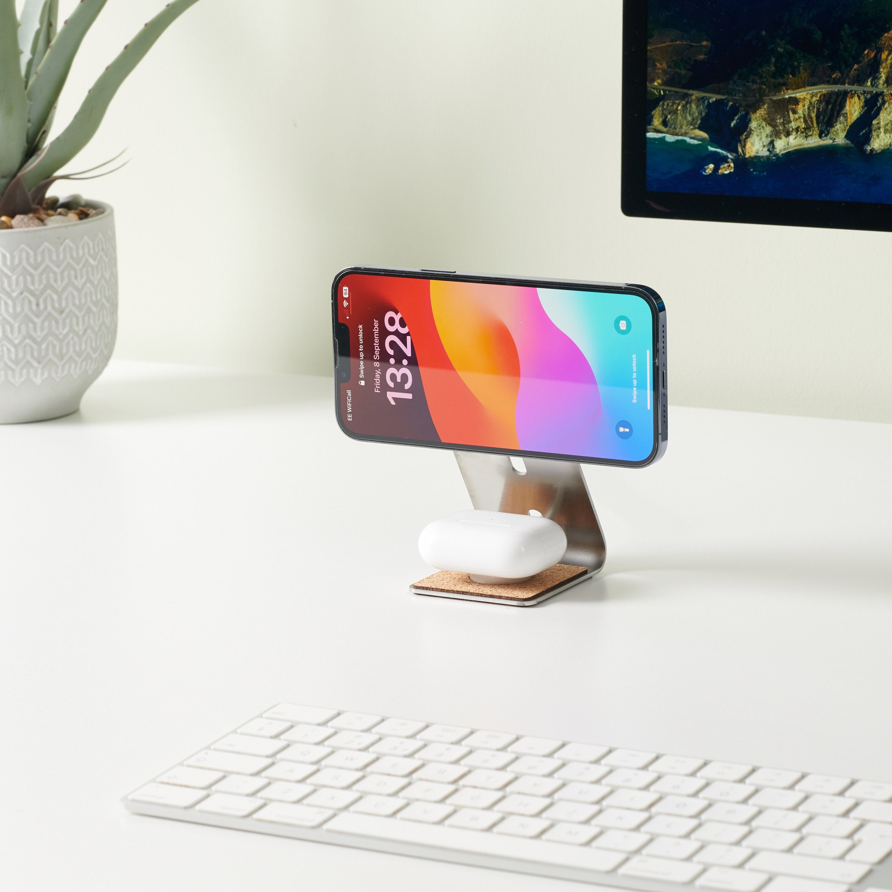 "Supporto per iPhone e AirPods progettato per il tuo comodino. Usa questo supporto per trasform...