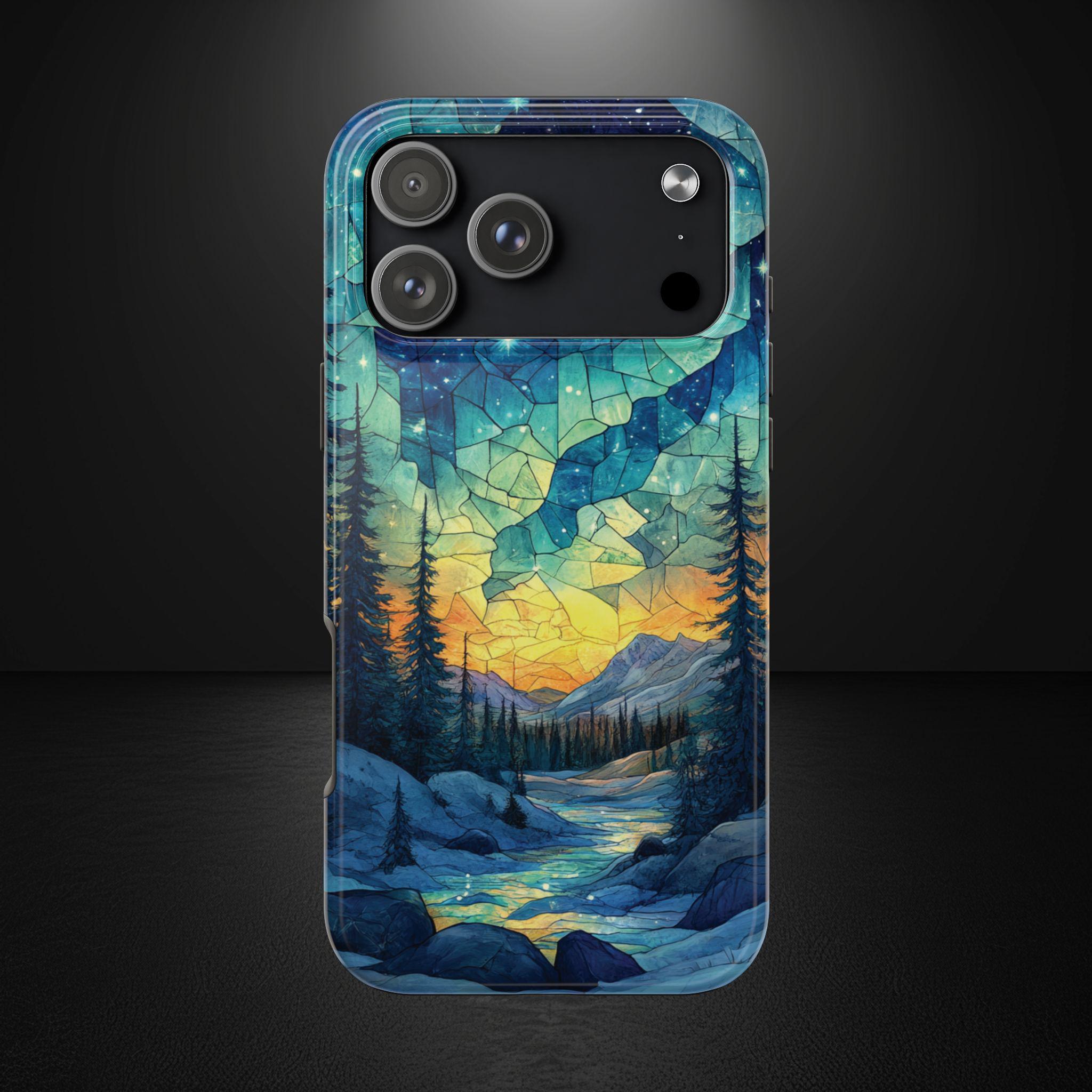 Custodia per telefono con paesaggio notturno in vetro colorato Auro...