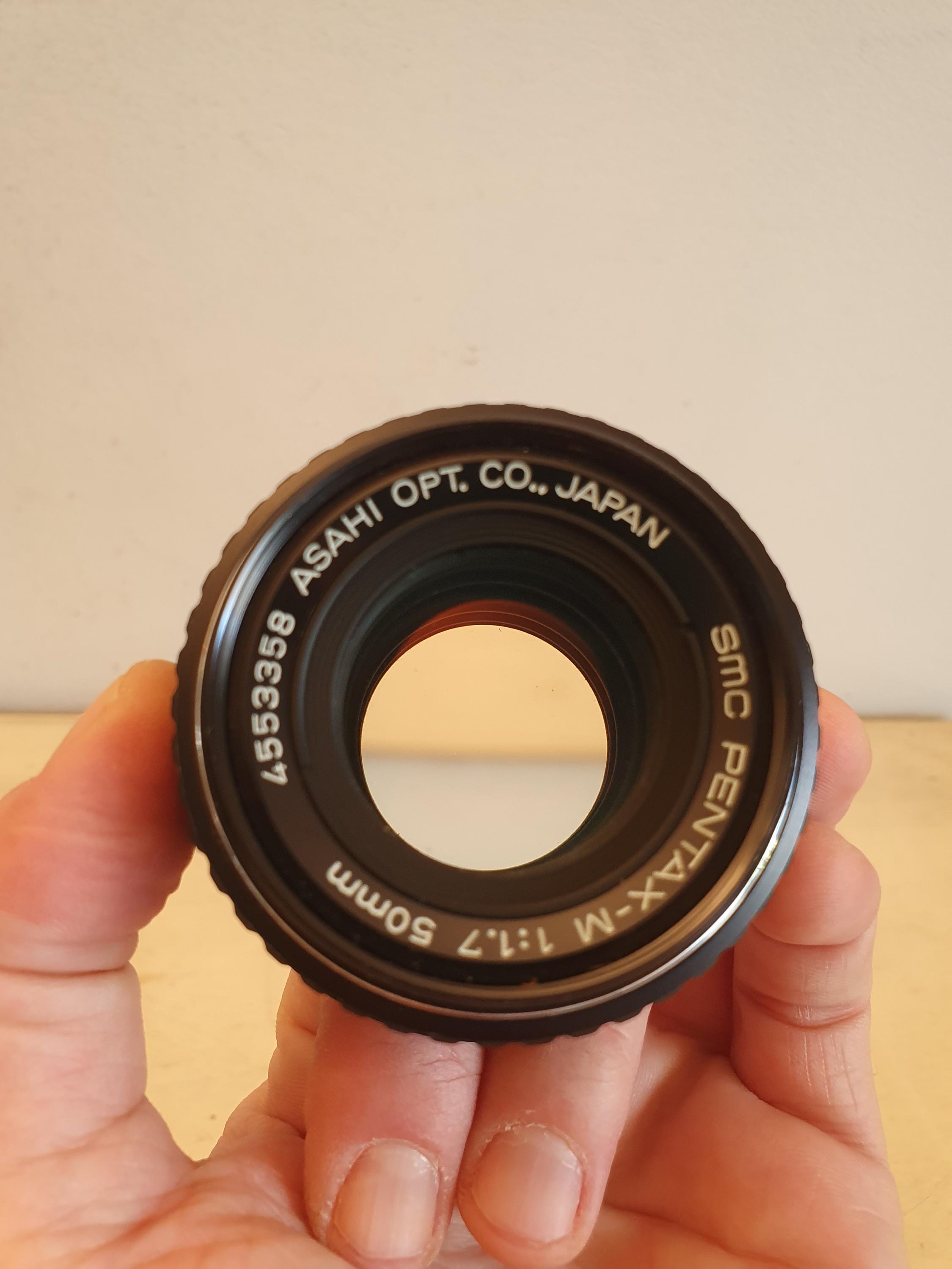 Obiettivo Pentax-M classico 50 mm f/1.7 di Asahi Giappone. Messa a fuoco manuale a focale fissa, nit...