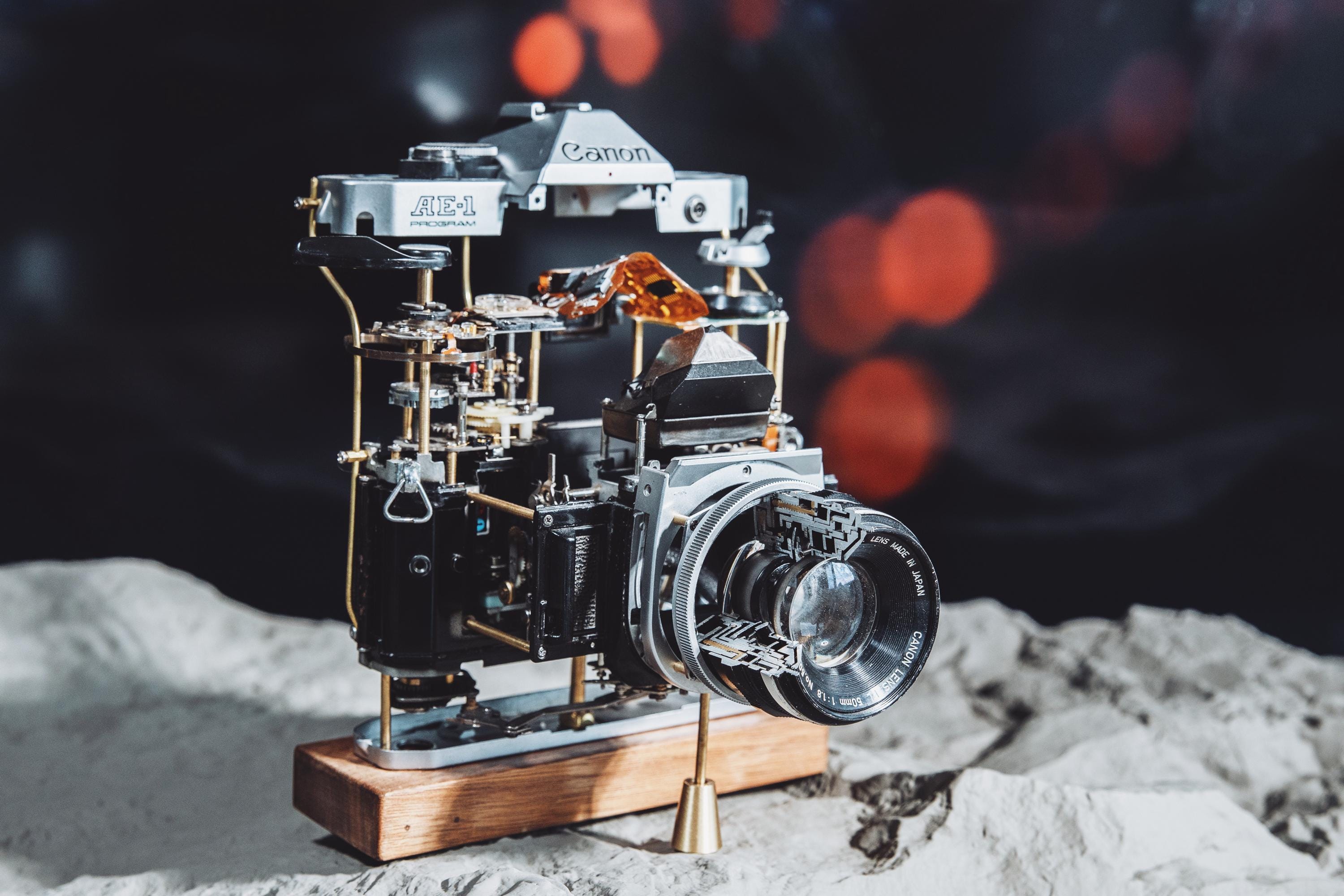 Macchina fotografica meccanica smontata, Canon AE-1 Canon FT smonta...