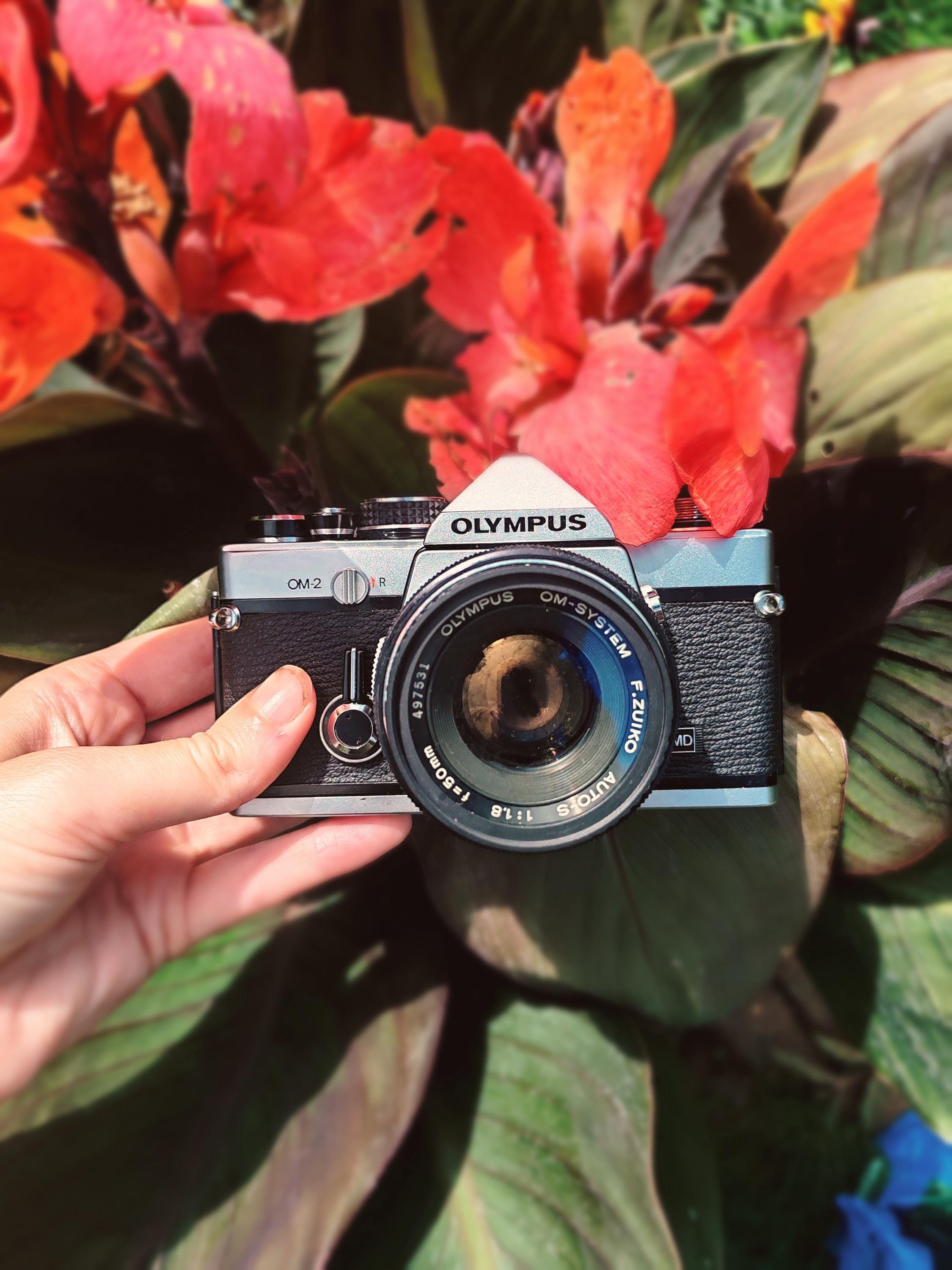 Fotocamera reflex Olympus OM-2 35 mm + obiettivo Zuiko 50 mm f/1.8 - Completamente testata, nuove gu...