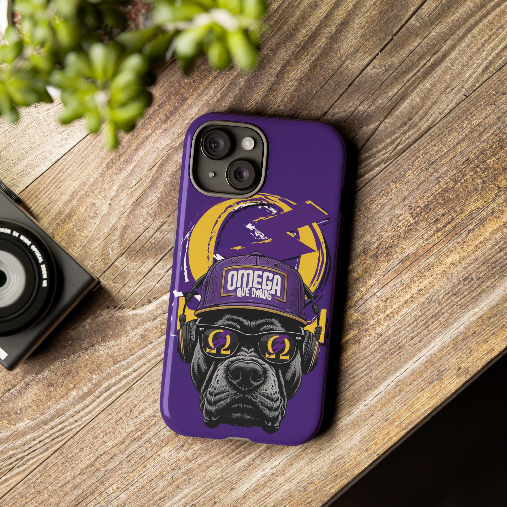 "Proteggi il tuo telefono con stile grazie alla nostra esclusiva custodia Omega Que Dawg, pensa...