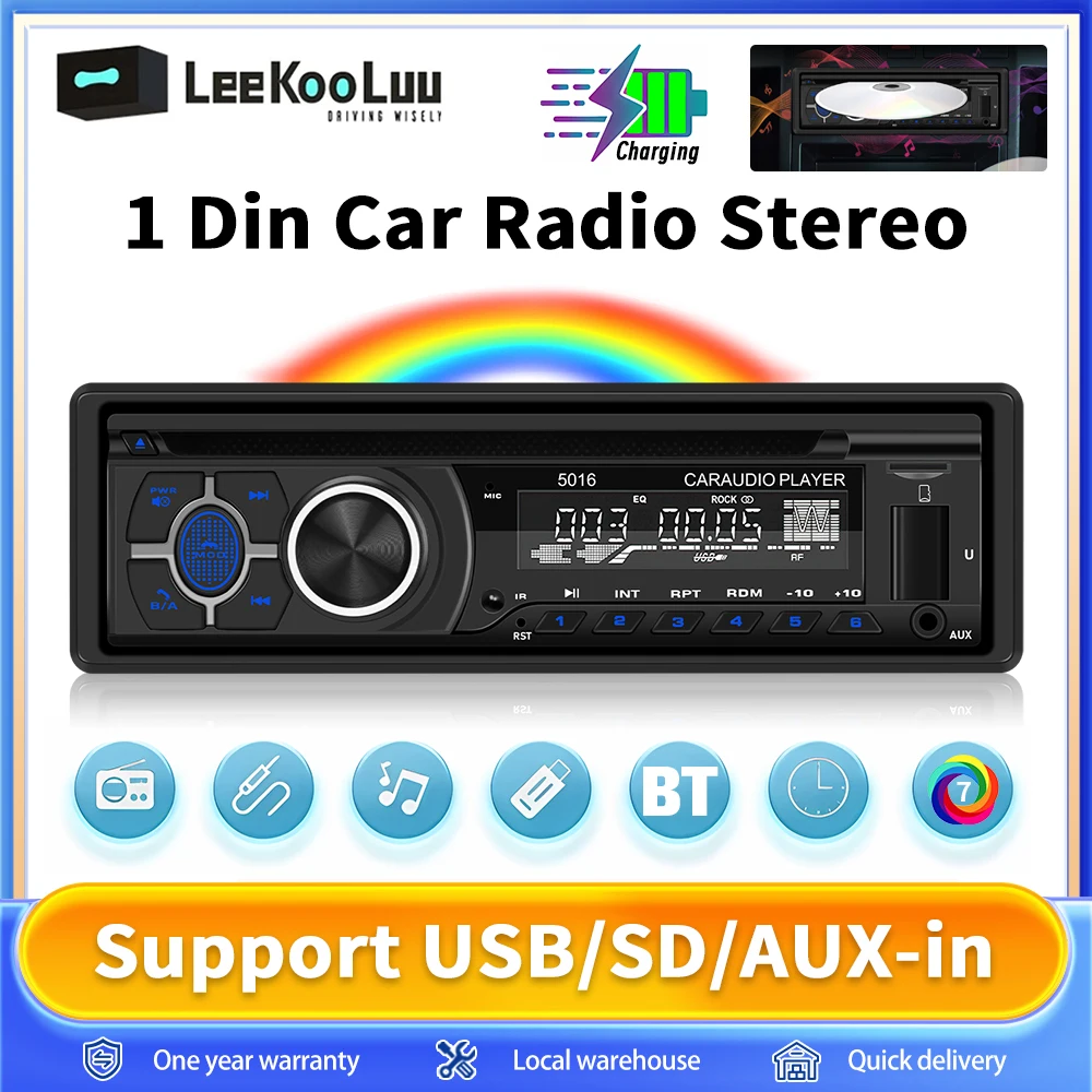Leekooluu 1 Din Lettore DVD/CD/VCD per auto AI Voce BT Digitale Bluetooth Audio Musica Stereo 12V Au...