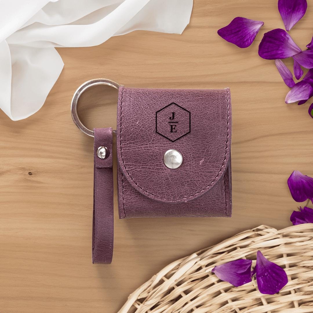 Custodia per auricolari in pelle di vacchetta viola fatta a mano pe...