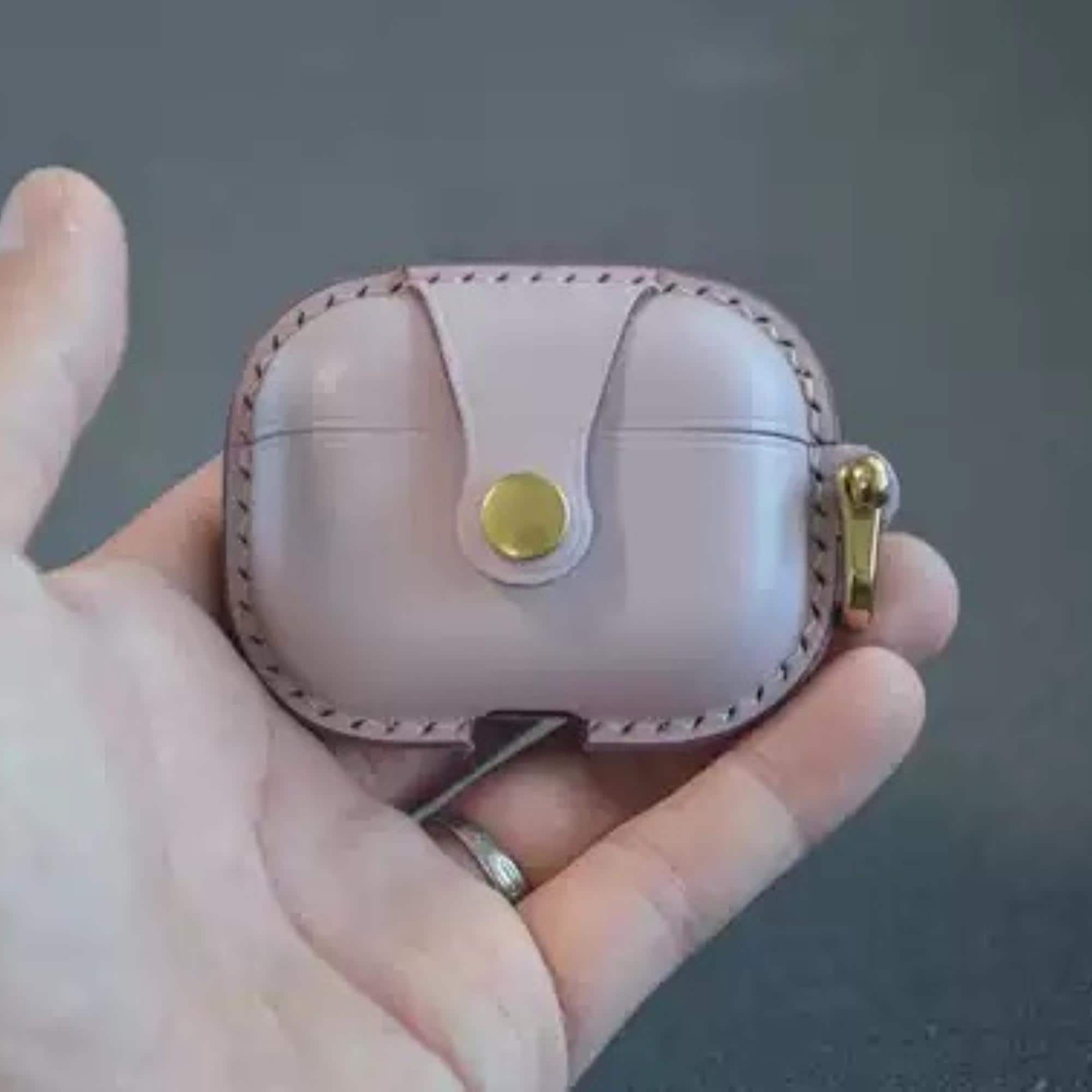 Custodia per auricolari rosa in pelle di vacchetta fatta a mano per...