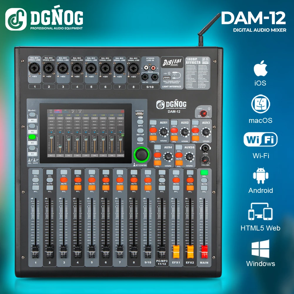 DGNOG DAM-12 Mixer Audio Digitale a 12 Canali con 6 Auxiliari ed Eq...