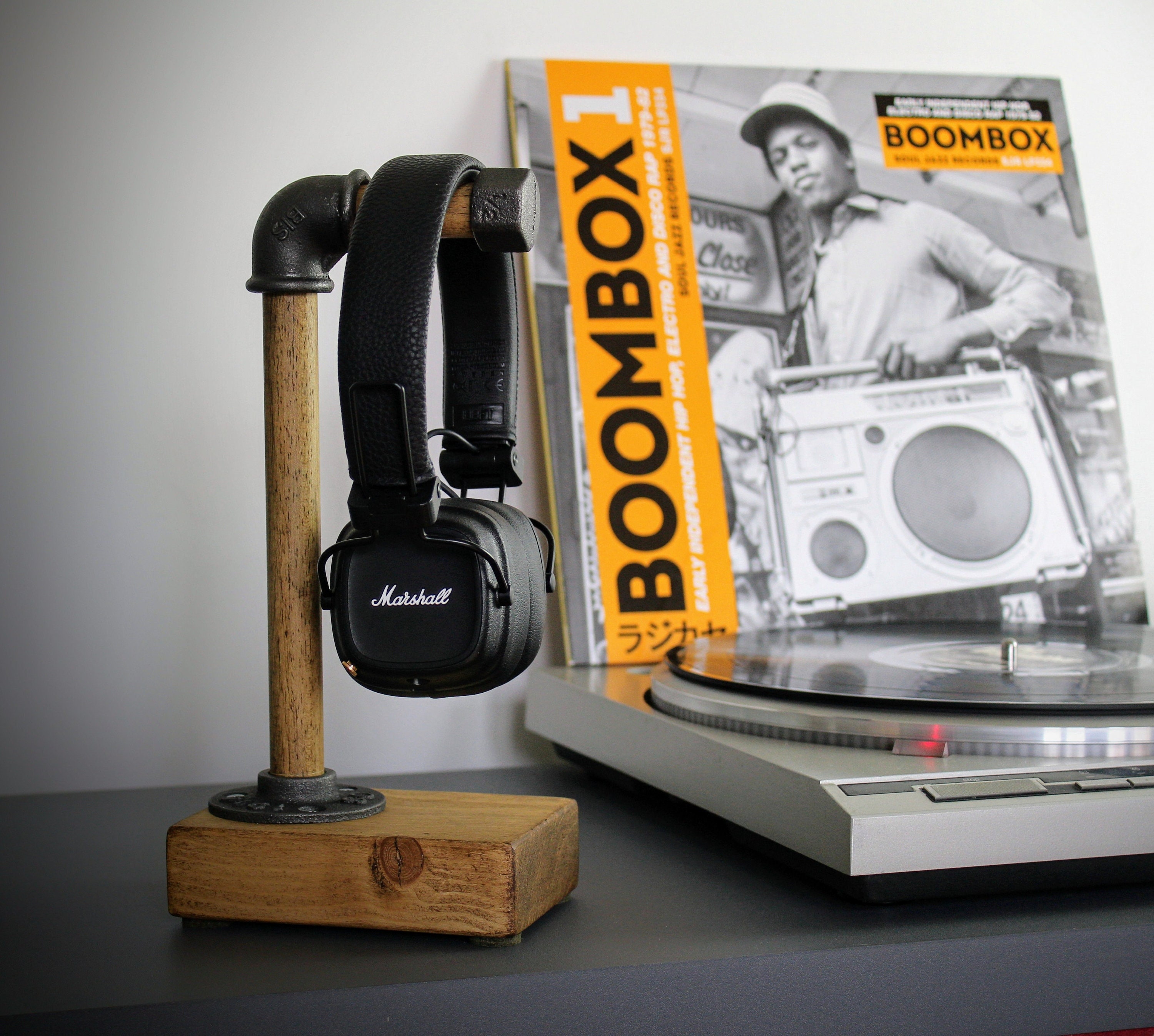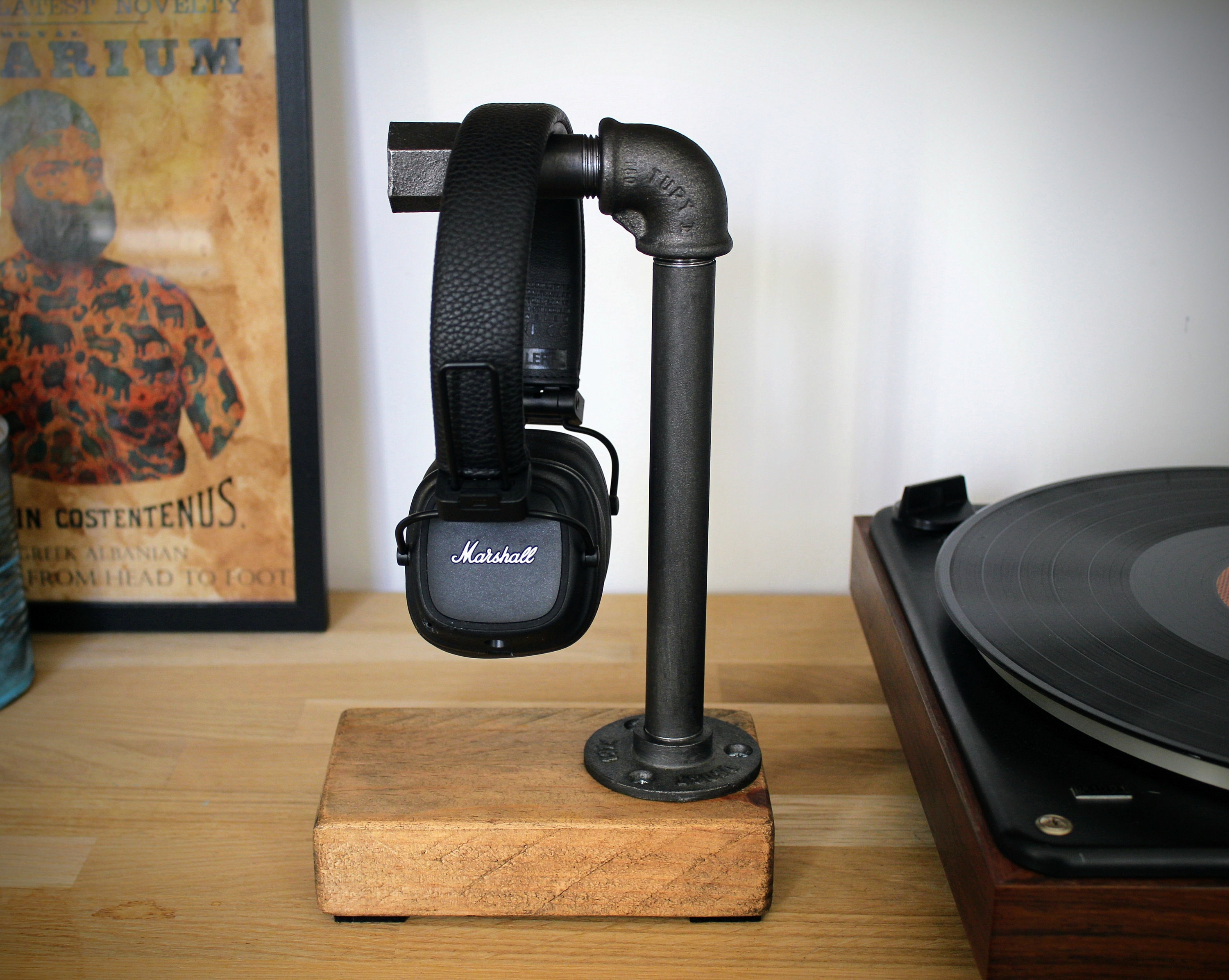 Supporto per cuffie in legno e acciaio. Supporto per cuffie per Hi-...