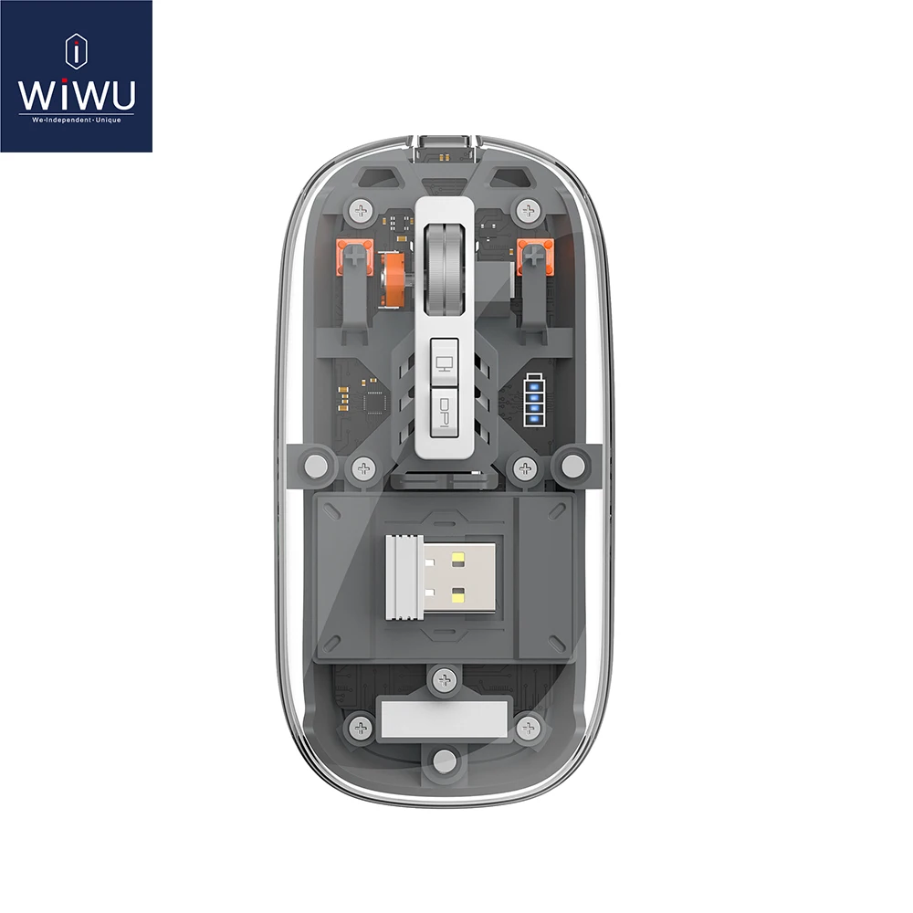 WiWU Crystal Wireless Mouse Cover rimovibile Dual Bluetooth Mouse 3 modalità Connect Mouse Wi...