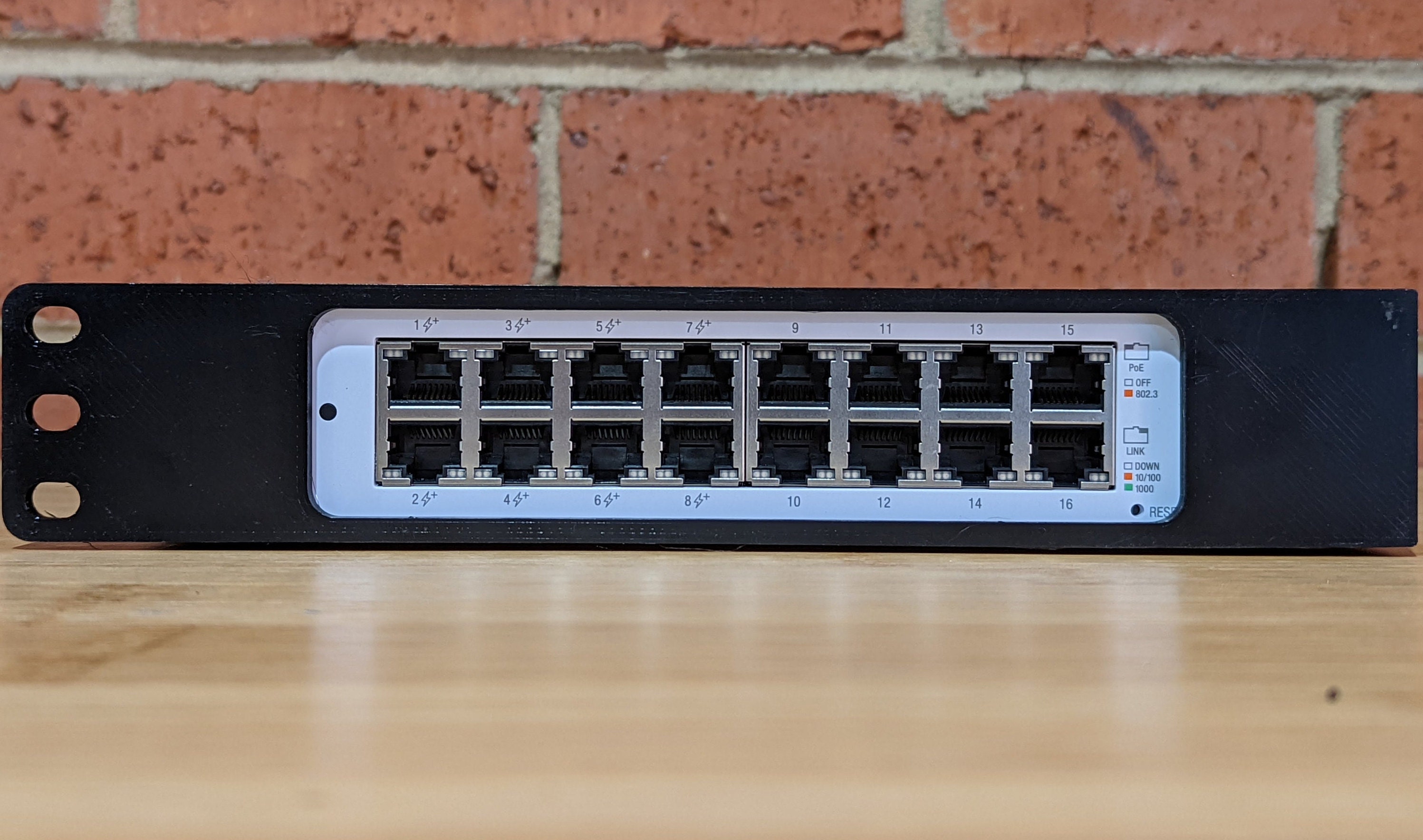 Supporto rack stampato in 3D che ti consente di montare il tuo Switch Lite 16 PoE in un singolo RU i...