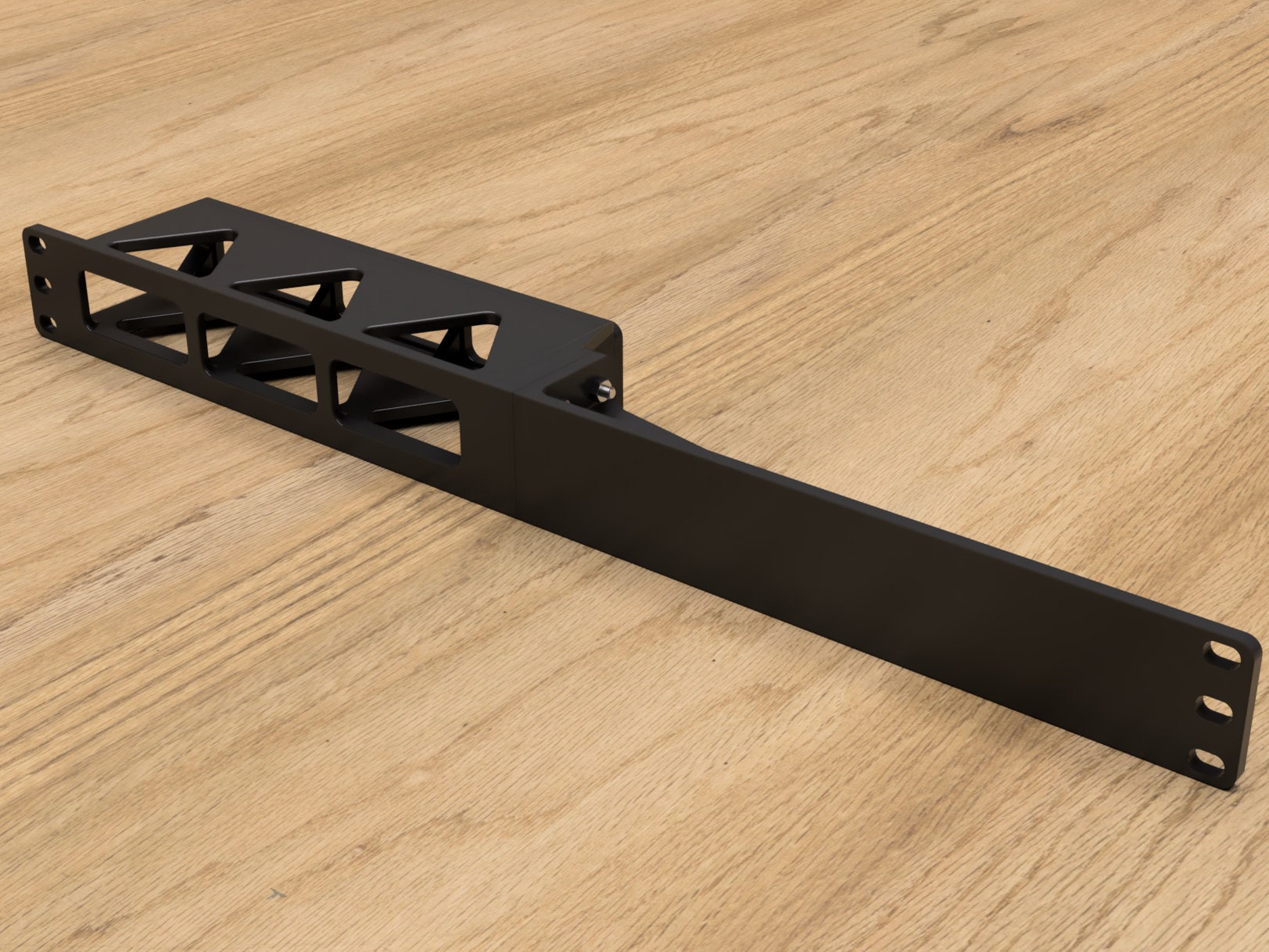 Supporto rack 1RU stampato in 3D per lo switch Netgear GS308EP. Fa parte della nostra gamma ModMount...