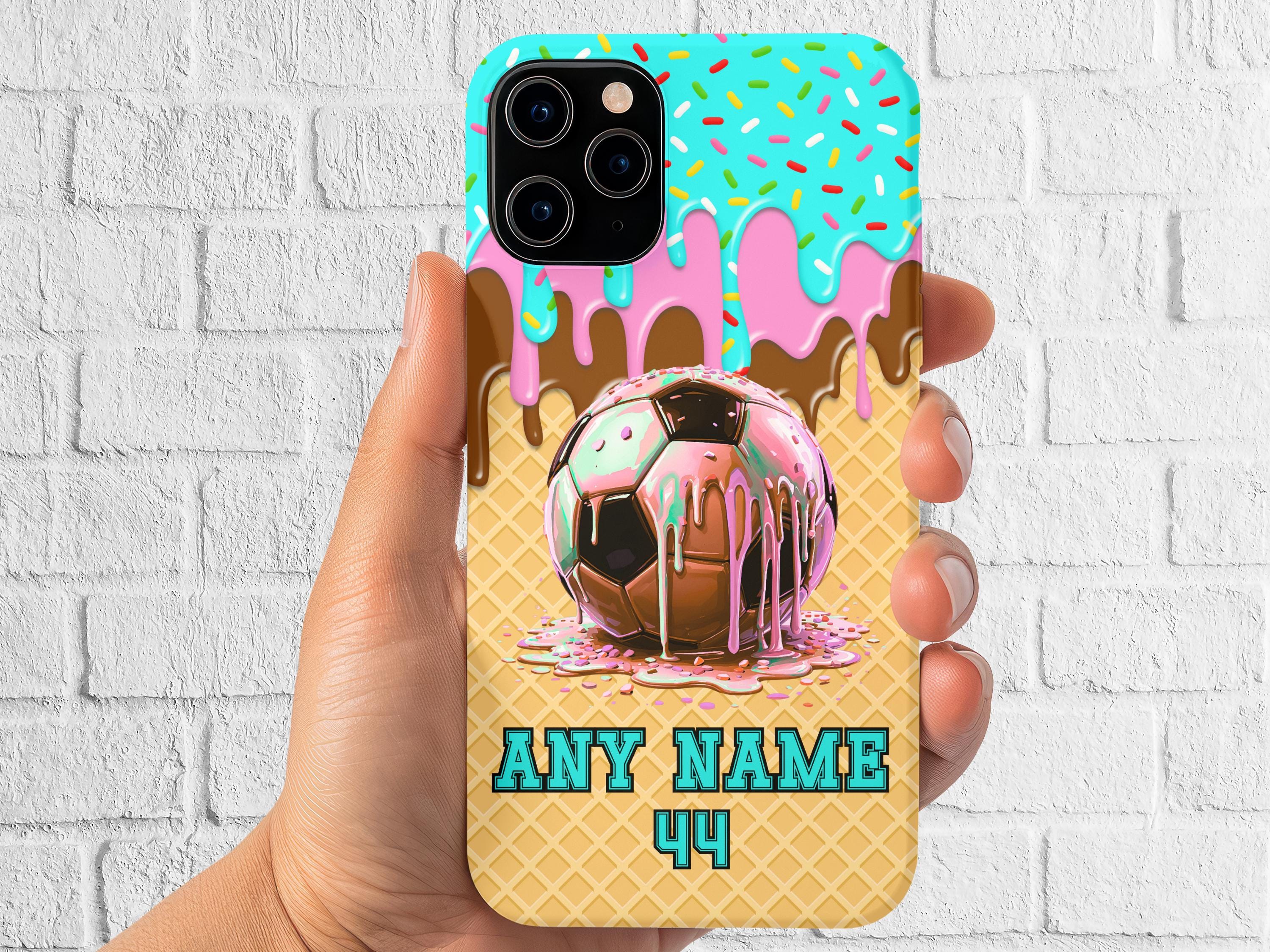 "Rispetta la goccia / Custodia personalizzata per iPhone con gelato da calcio / Nome e numero p...
