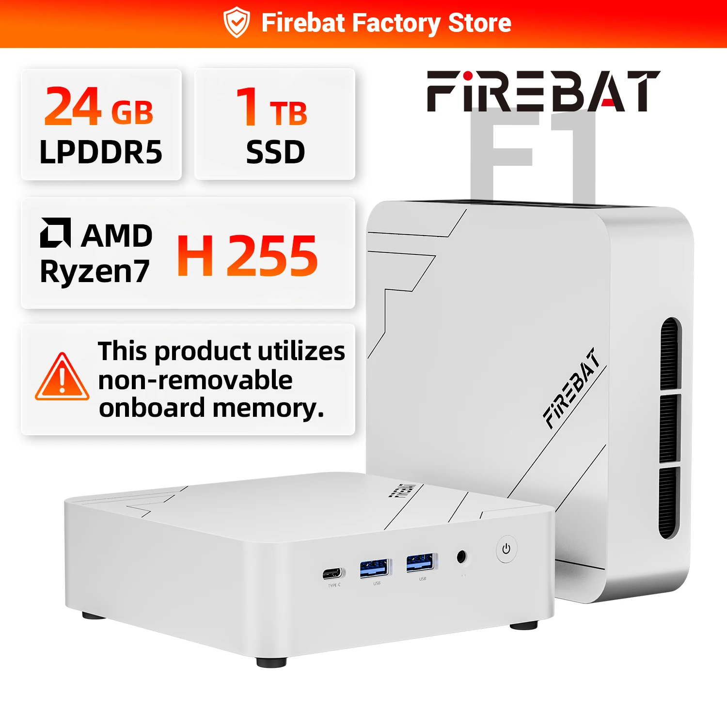 FIREBAT F1 MINI PC AMD Ryzen 7 H255 LPDDR5 24GB RAM 1TB SSD WIFI6 BT5.2 Desktop portatile MINI-PC Co...
