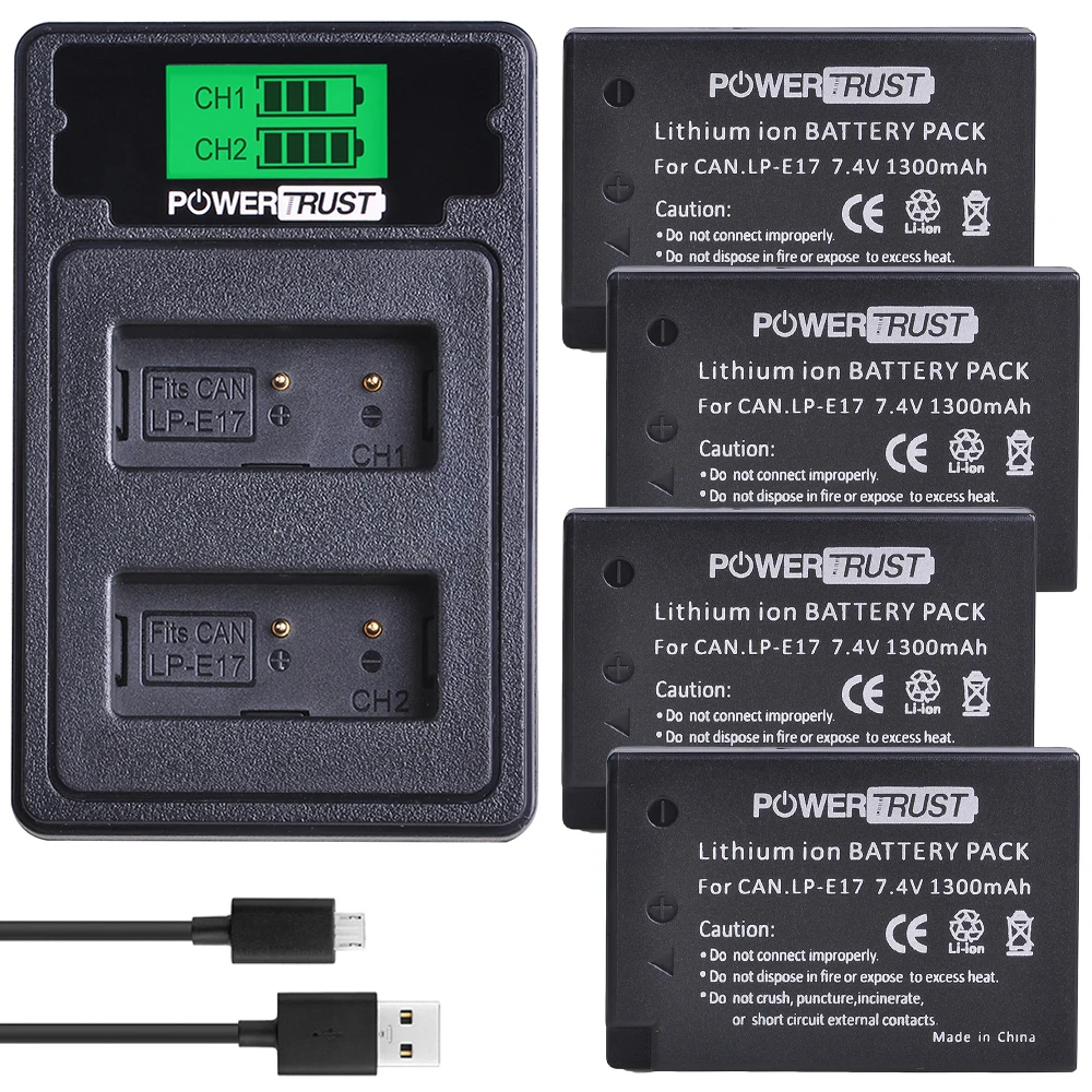 PowerTrust LP-E17 LPE17 LP E17 batteria + caricatore USB LCD con porta di tipo C per Canon EOS M3 M5...