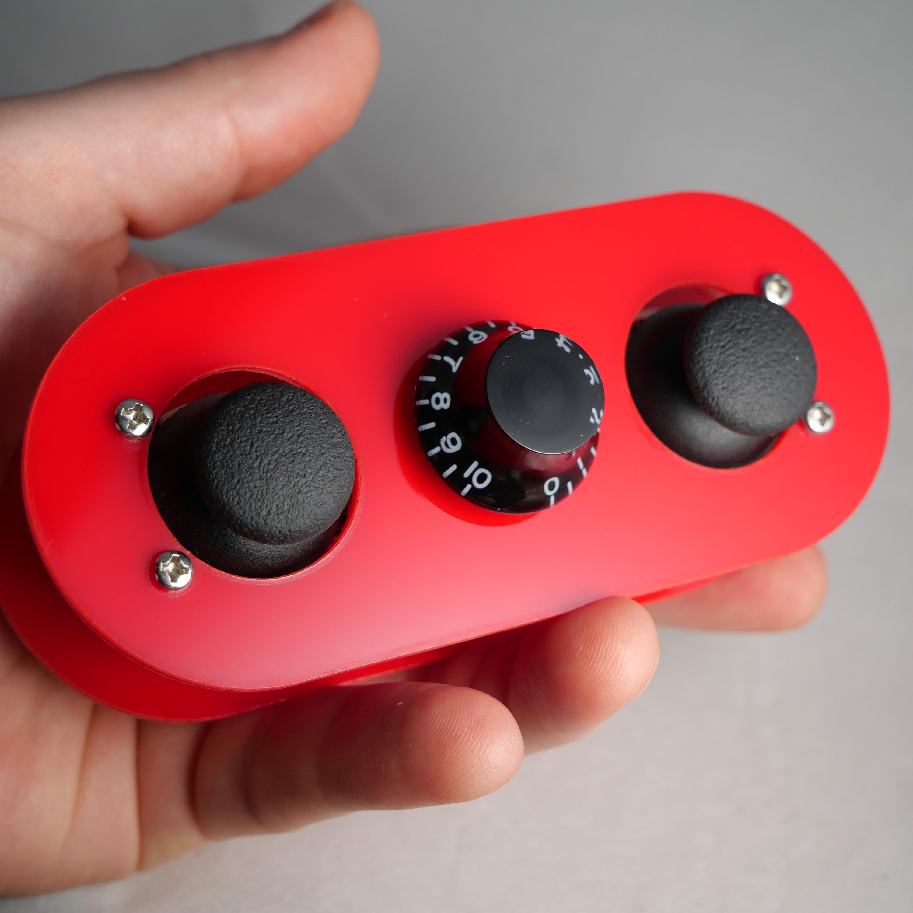 Il controller MIDI Pill con 2 joystick, 2 pulsanti nota e 1 manopol...