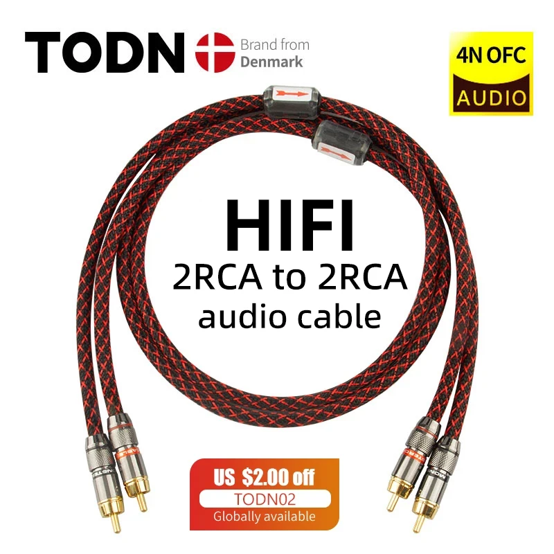 TODN 1 paio cavo audio RCA 2 cavi di interconnessione RCA a 2 cavi HIFI stereo 4N OFC maschio a masc...