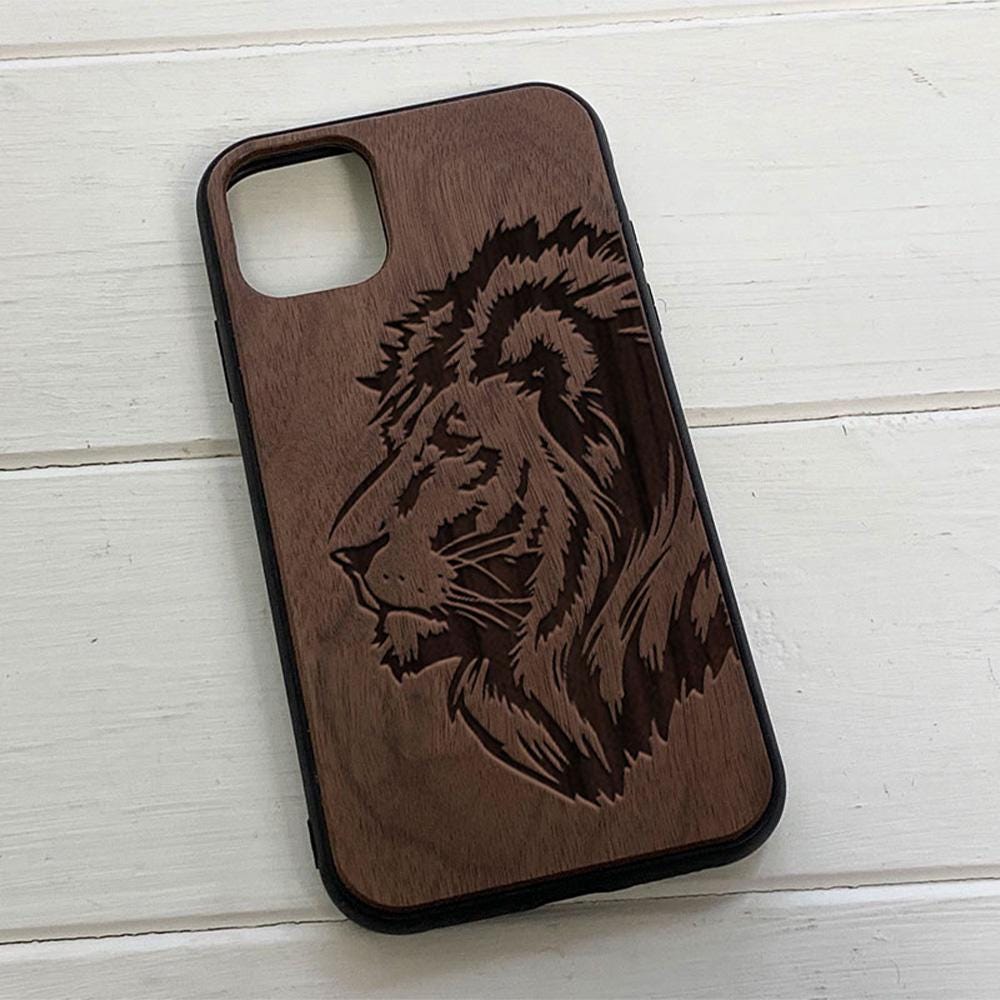 Custodia per iPhone in legno incisa: noce americano, rivestimento s...