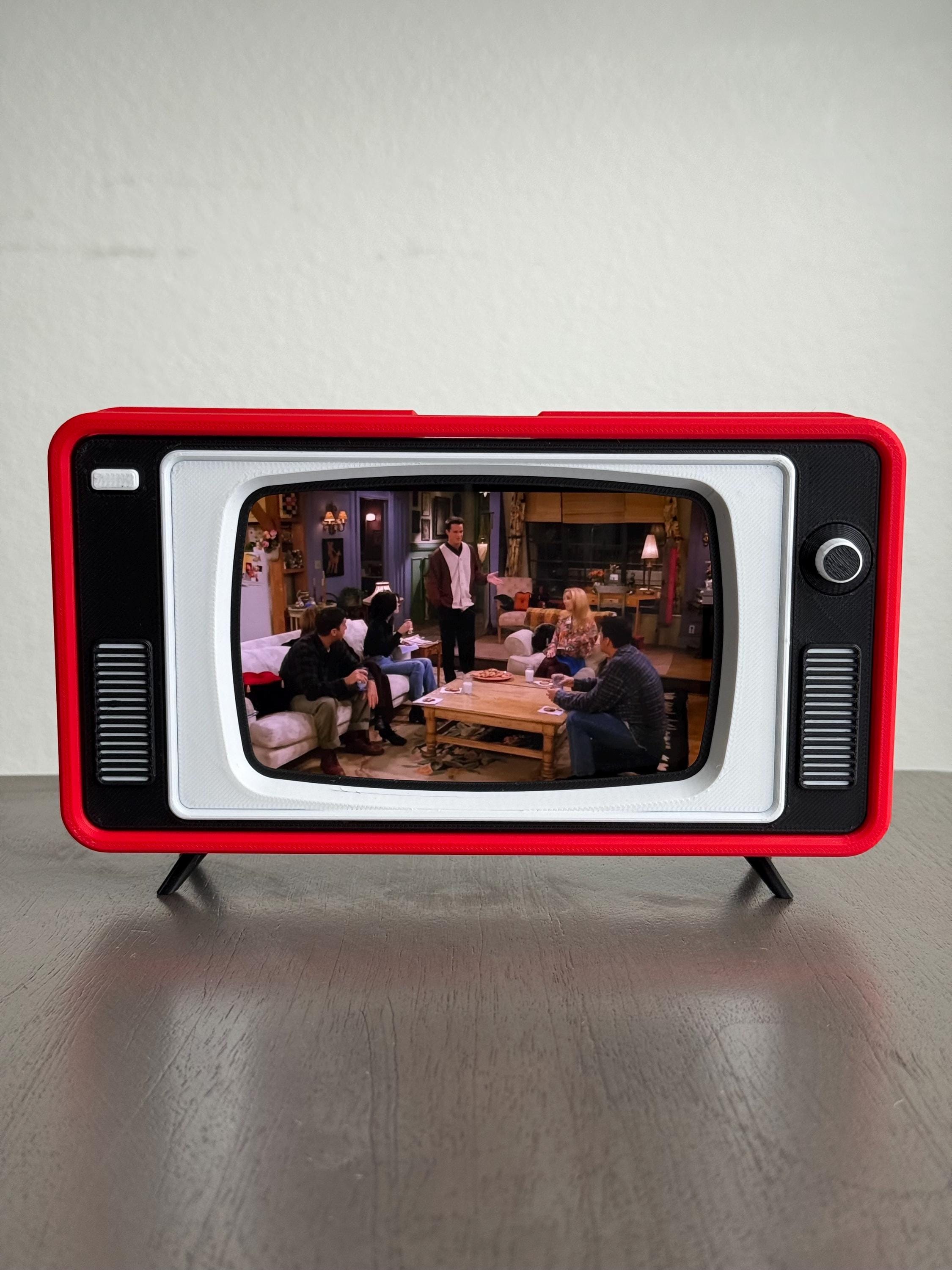 Supporto per TV retrò stampato in 3D per iPhone 16 Pro Max. *leggere attentamente l'ultima ri...
