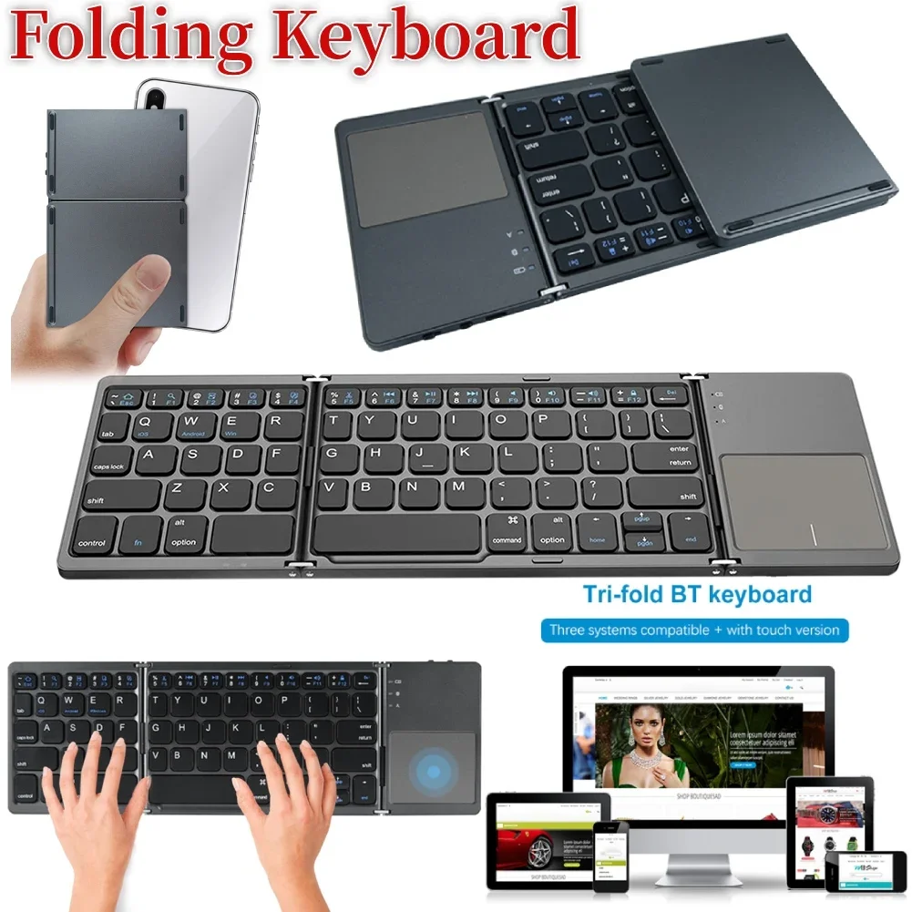 B033 Mini tastiera pieghevole Tastiera Bluetooth wireless con touchpad Tastiere portatili ricaricabi...