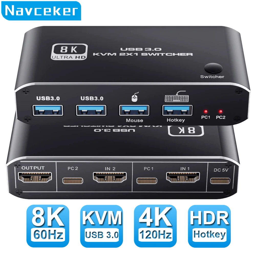 2023 Miglior HDMI 2.1 KVM Switch 4K 120Hz HDMI USB KVM Switch Dual ...