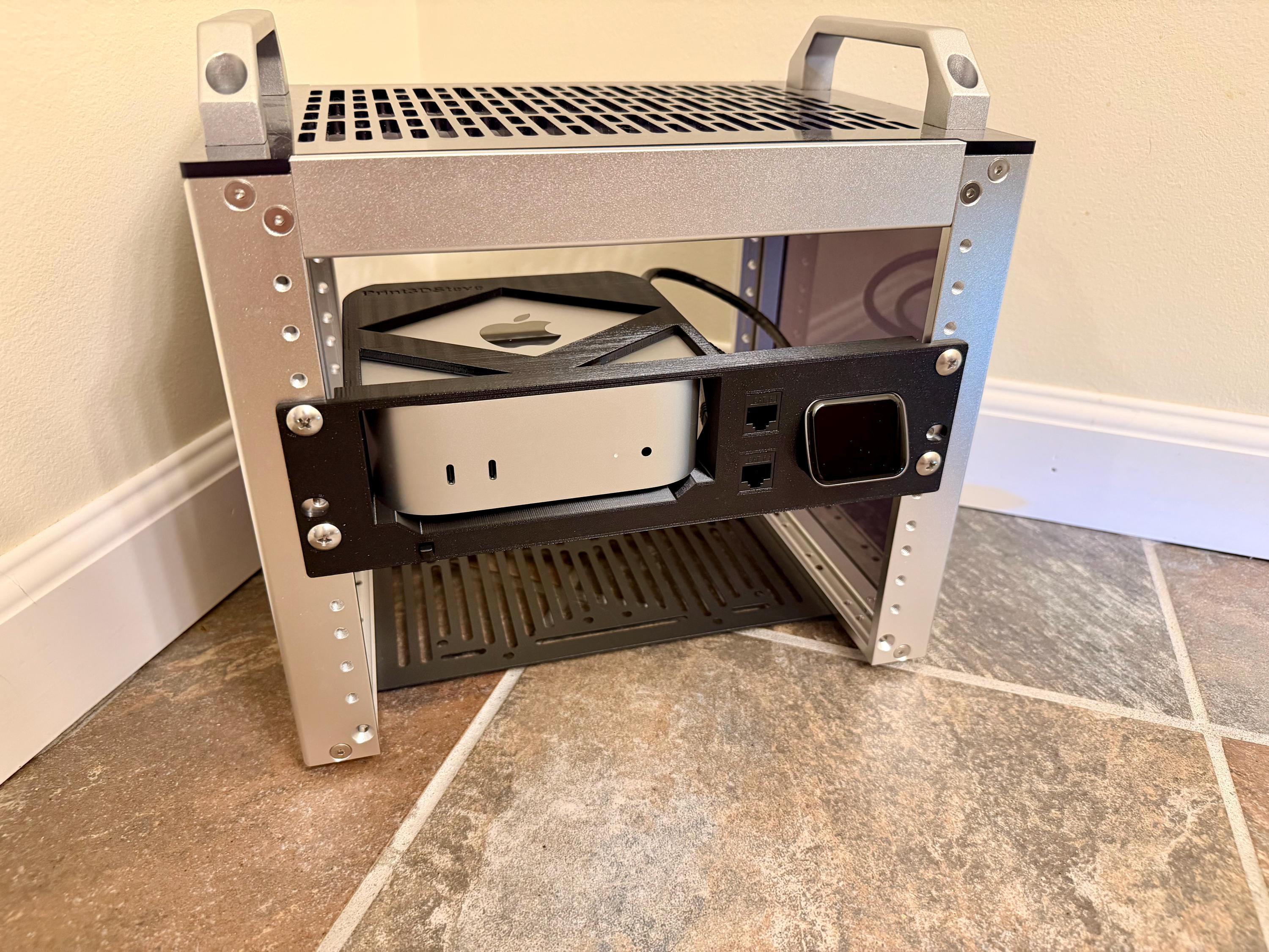 Mini rack da 10 pollici stampato in 3D per Mac Mini M4 2024 e JetKVM. Pulsante frontale per il Mac e...