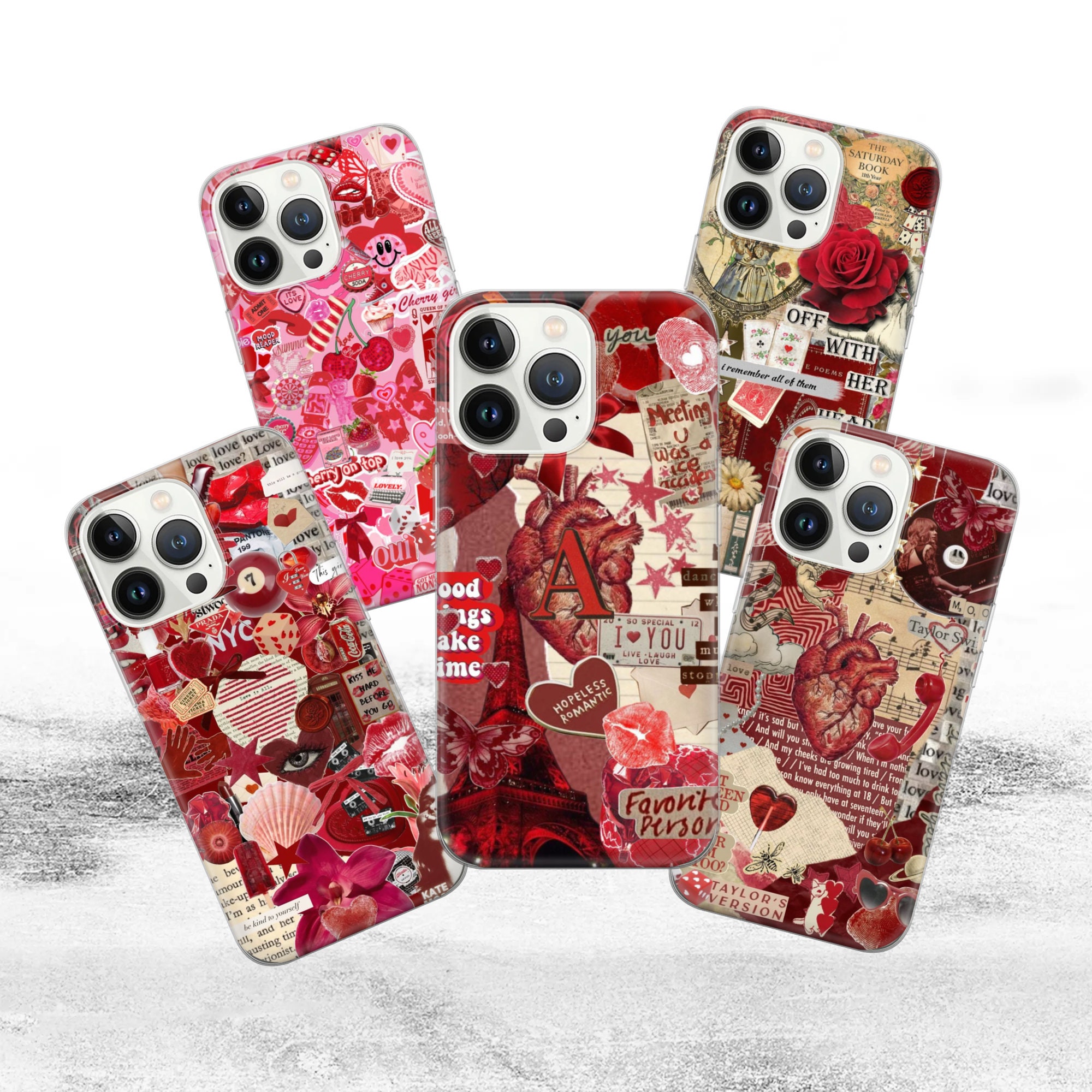 Custodia per telefono Red Coquette collage RED Heart Cover per iPho...